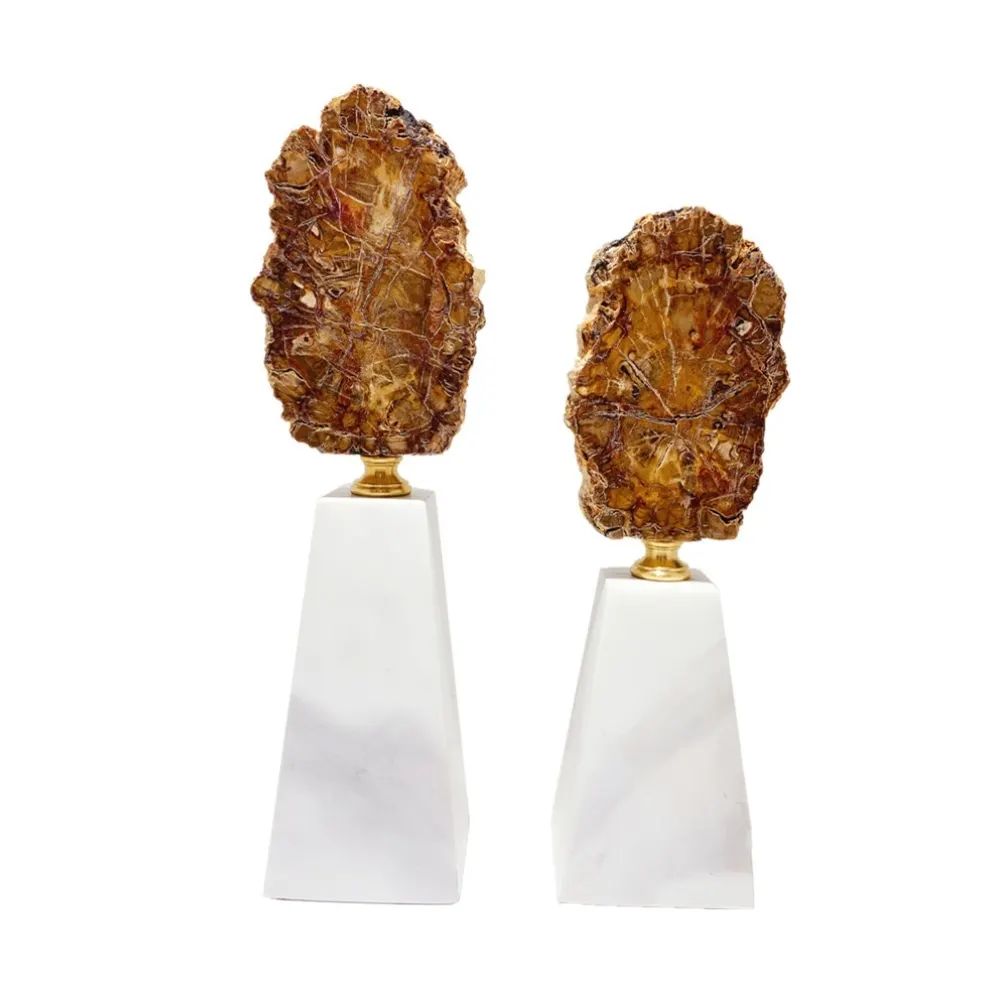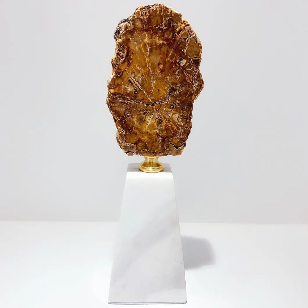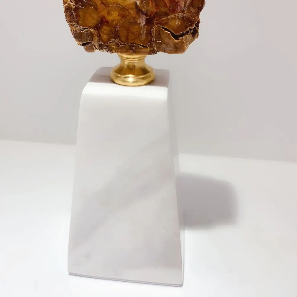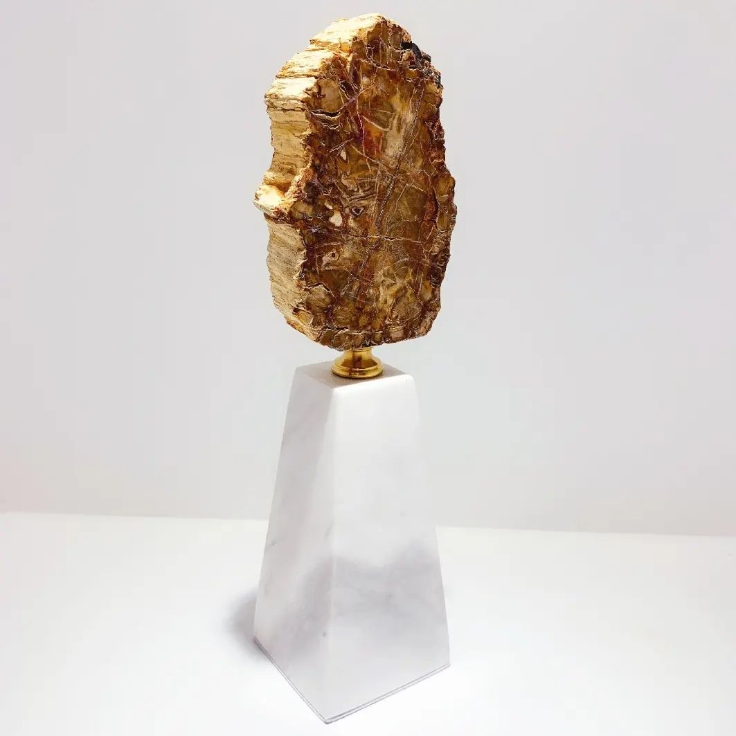 Стильный декор Monsterior Gems c 200000000-летней историей. Натуральное окаменелое дерево – ровесник динозавров, на подставке из благородной латуни и белоснежного мрамора. Шикарное, статусное решение для современного интерьера – домашнего и (или) делового. Бесподобный, незабываемый подарок любимым людям или деловым партнерам.