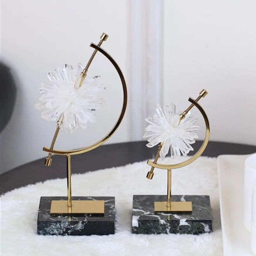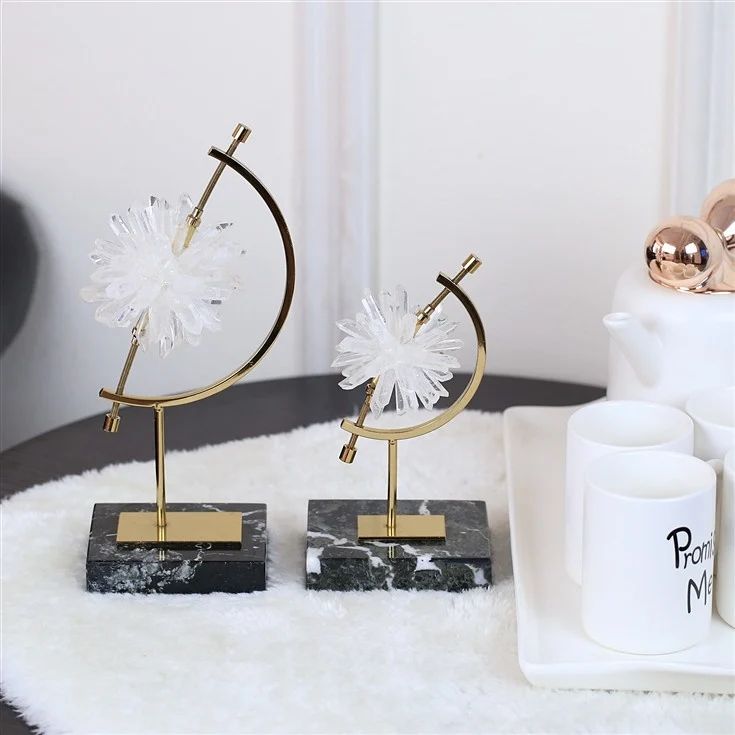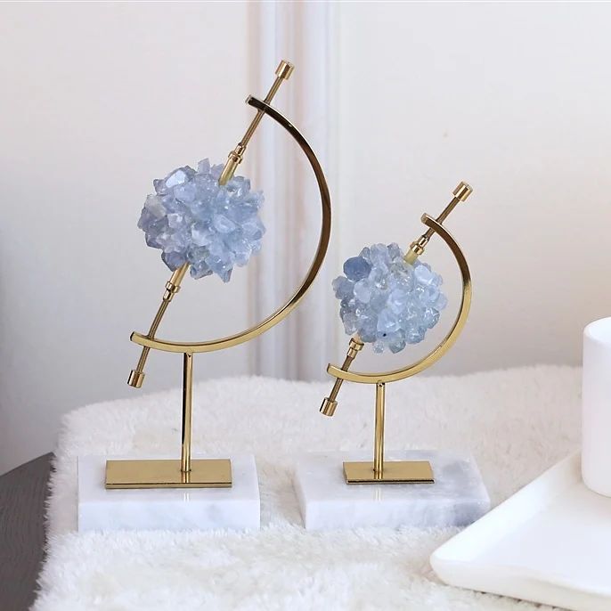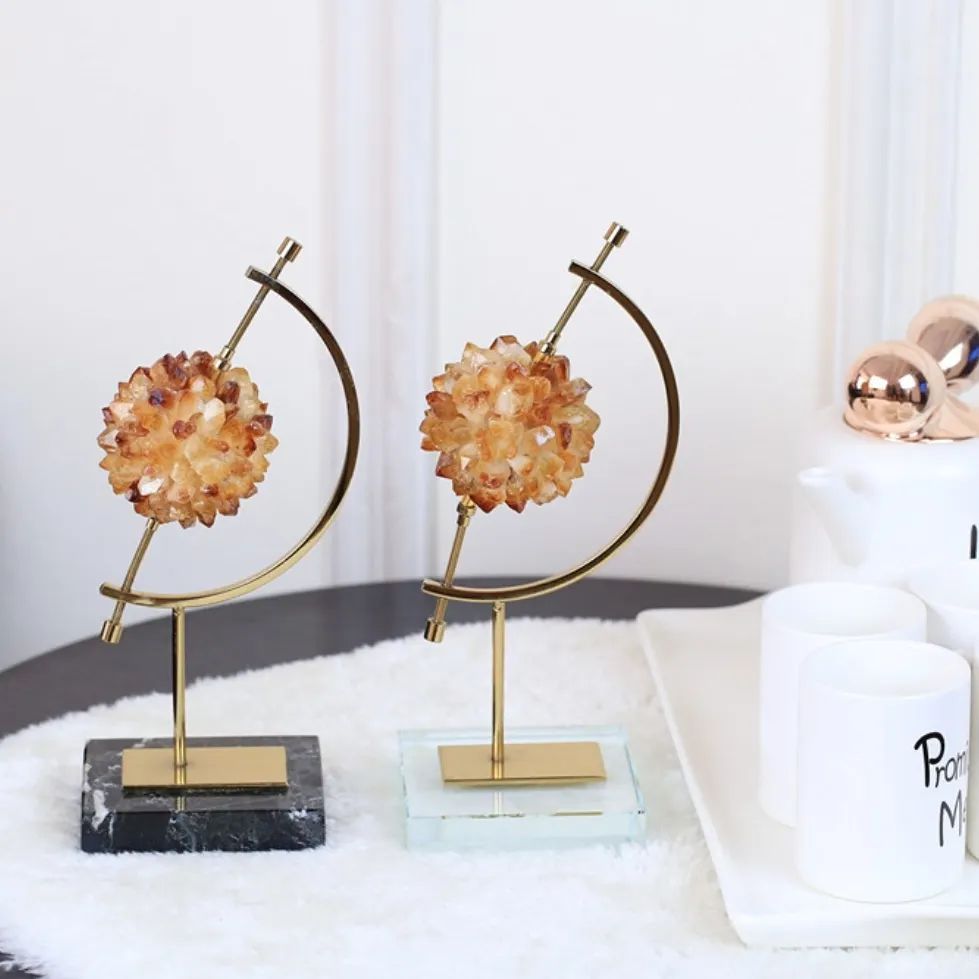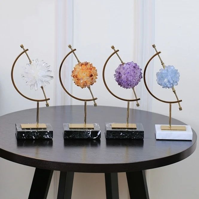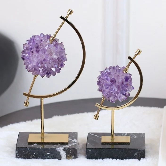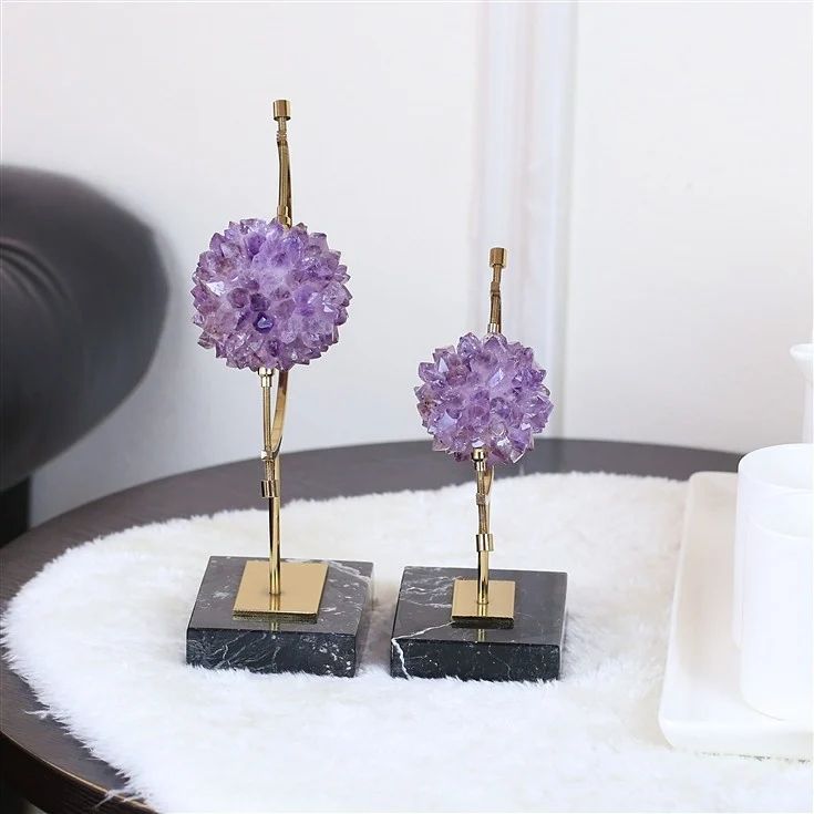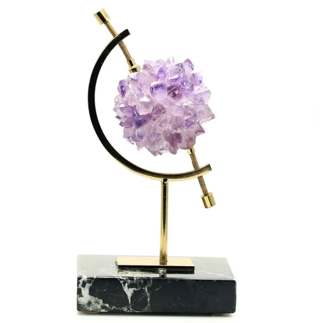 Стильный декор Monsterioг Gems из благородной латуни, натурального мрамора и отборных кристаллов аметиста, цитрина или целестита, на выбор. Отличное украшение для современного, статусного интерьера – домашнего и (или) делового.