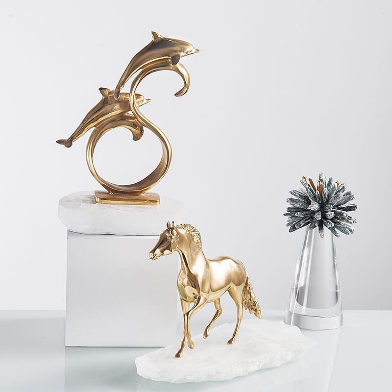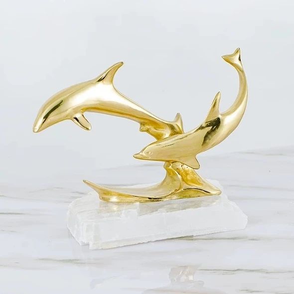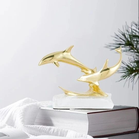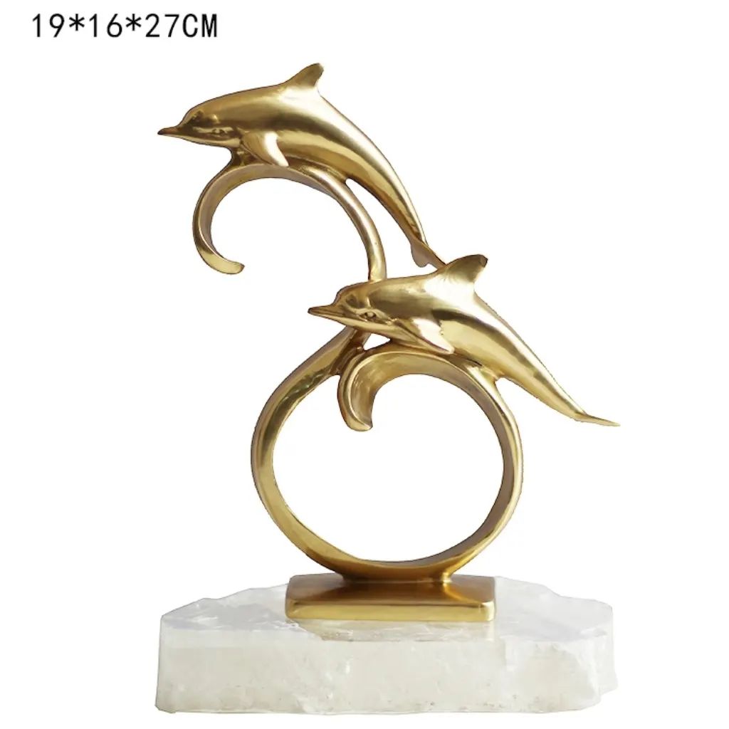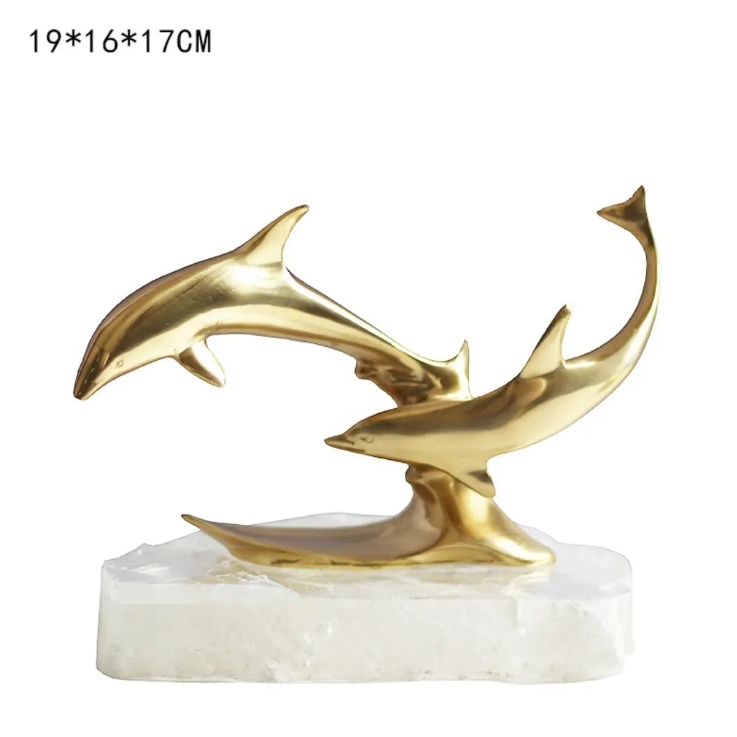 Очаровательные дельфины из благородной латуни, на подставке из натурального кварца. Шикарный, позитивный декор для украшения вашего интерьера – домашнего и (или) делового. Отличный символизм свободолюбия, радости и чести. Стильная красота в вашем личном пространстве!