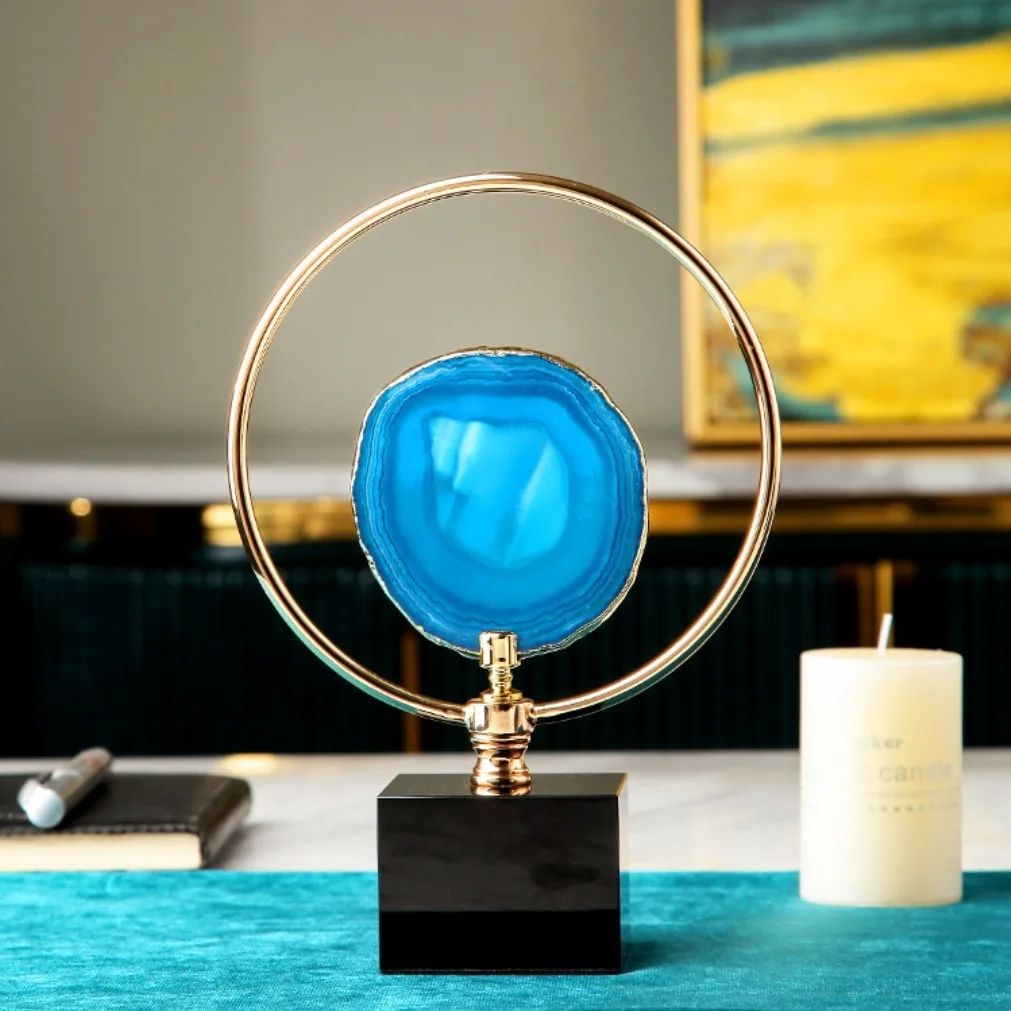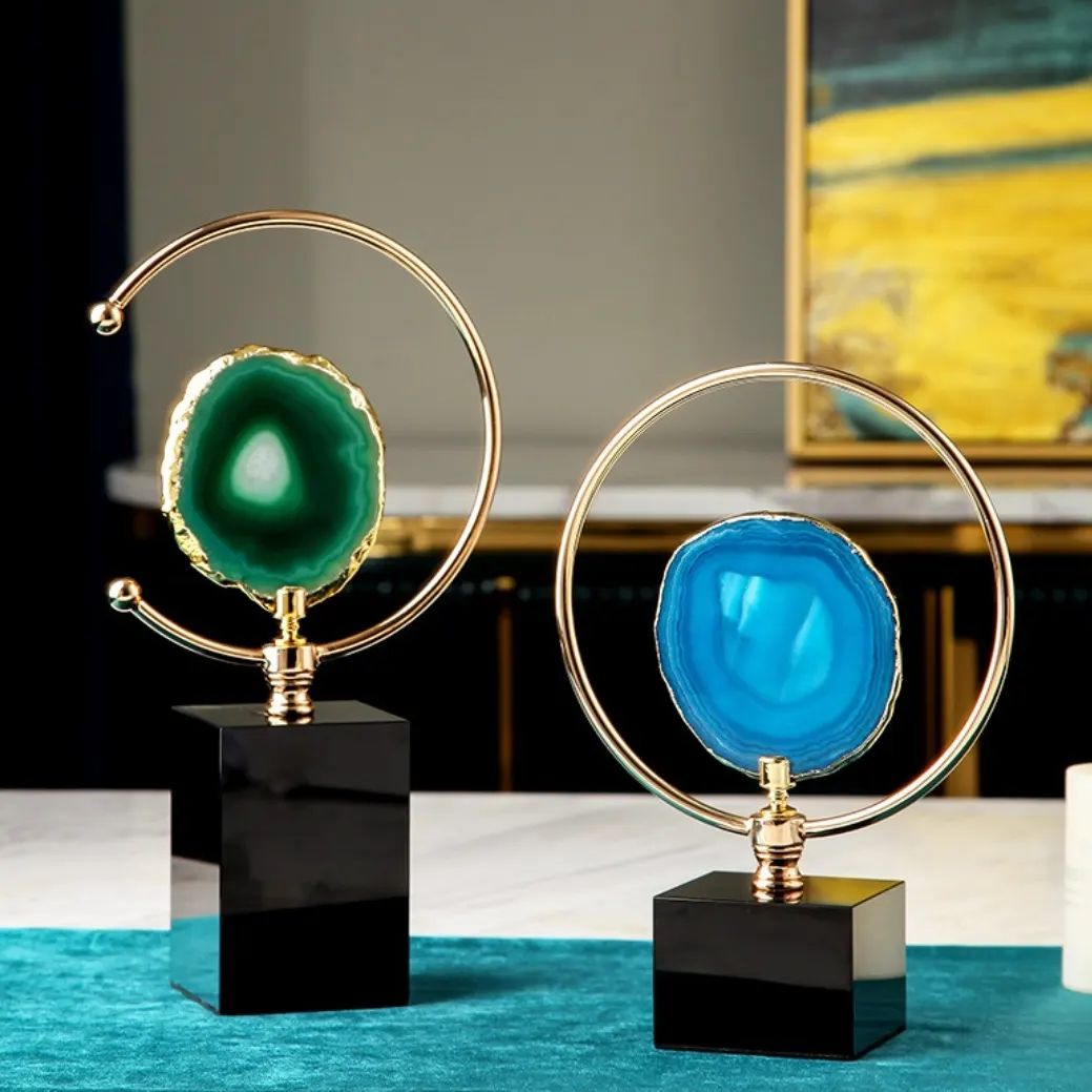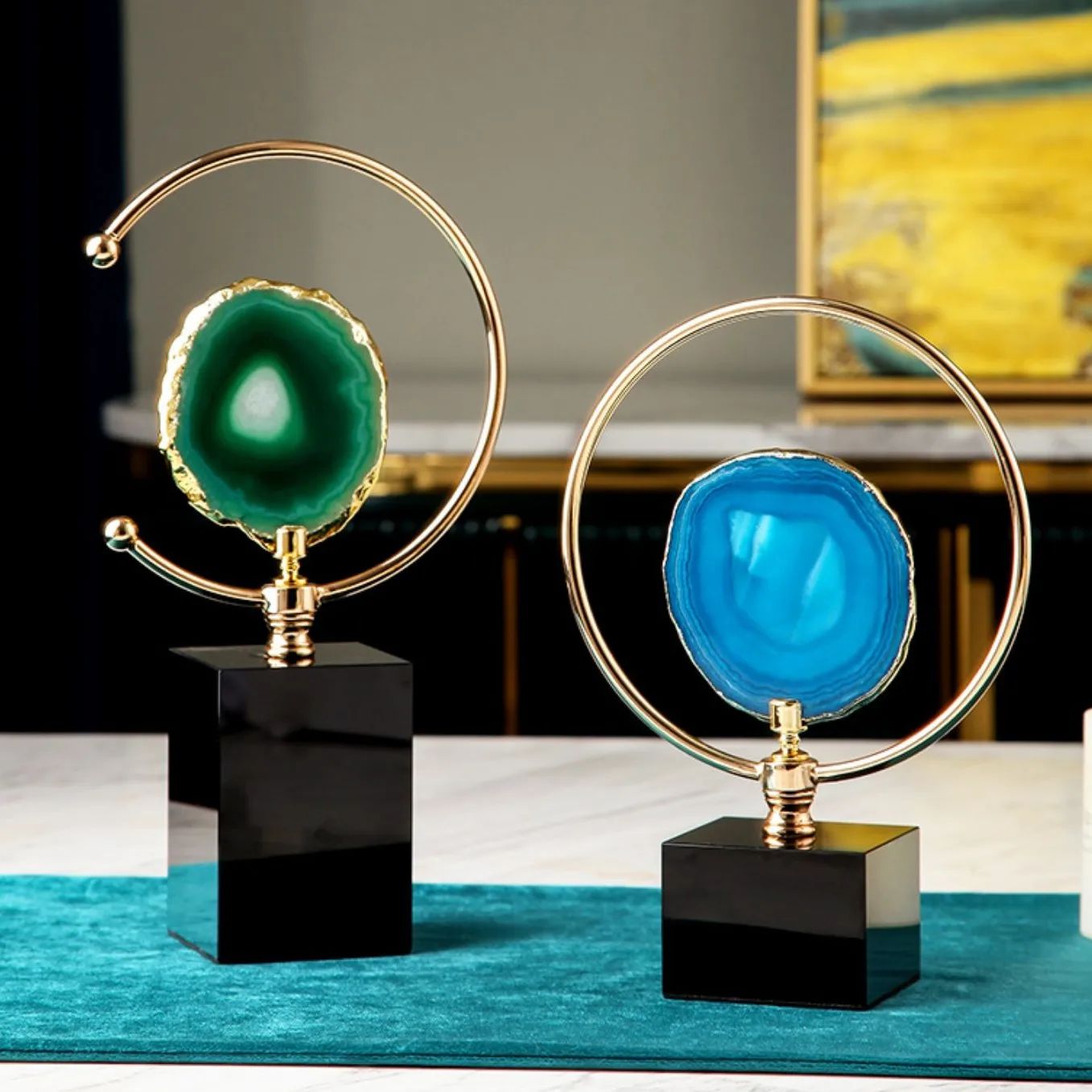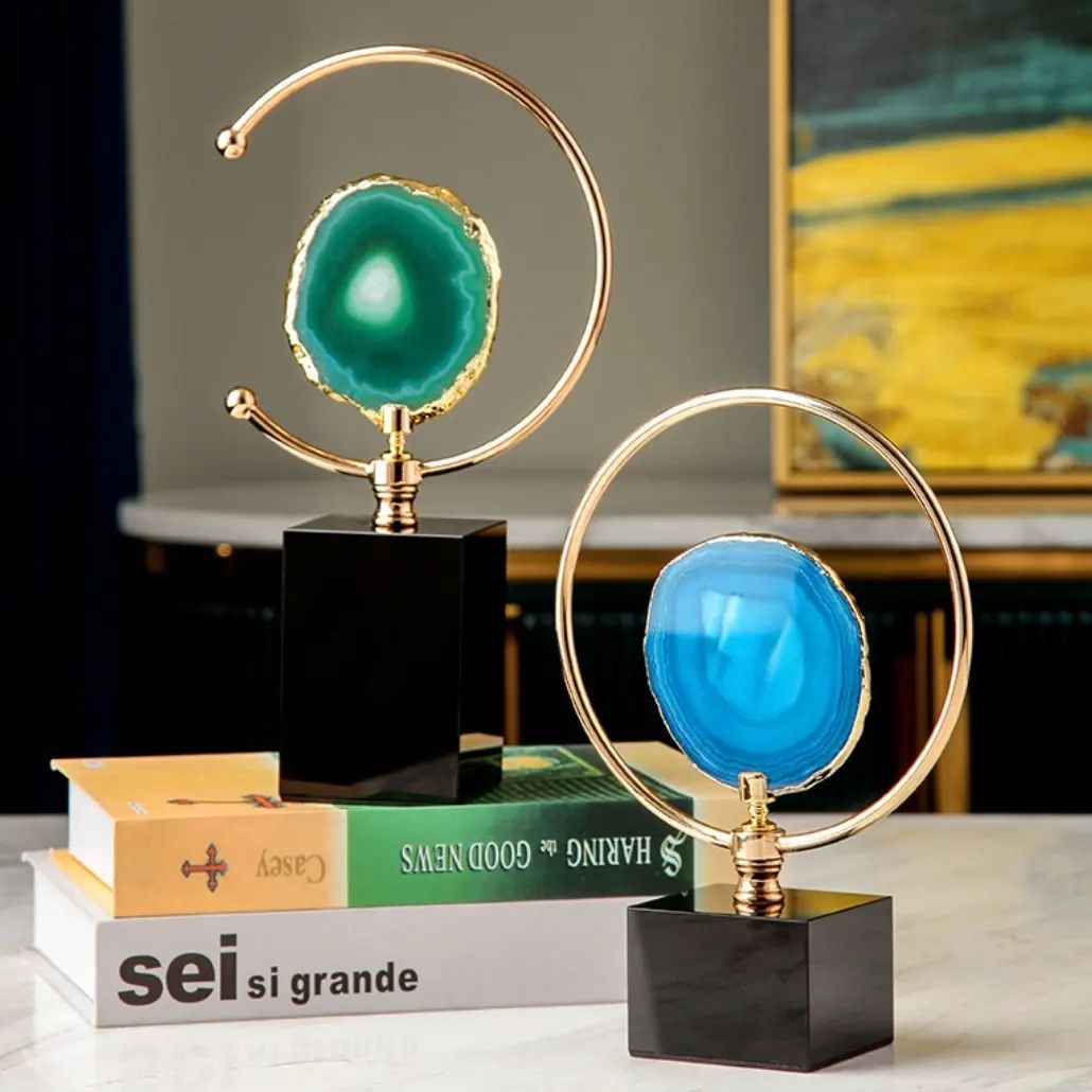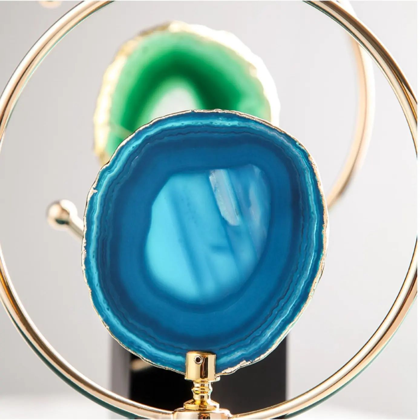 Статуэтка Срез агата в обрамлении латуни на подставке