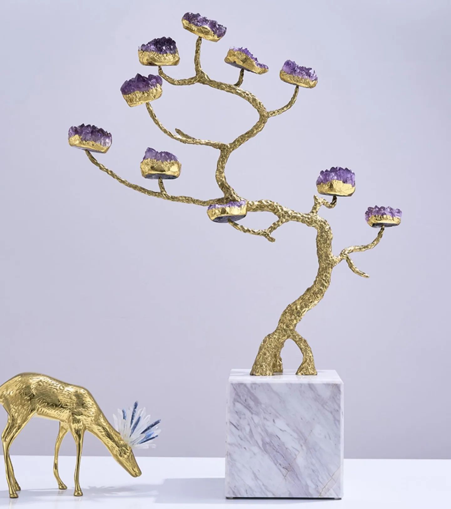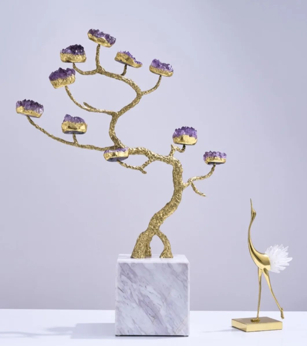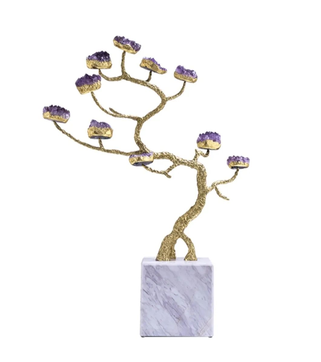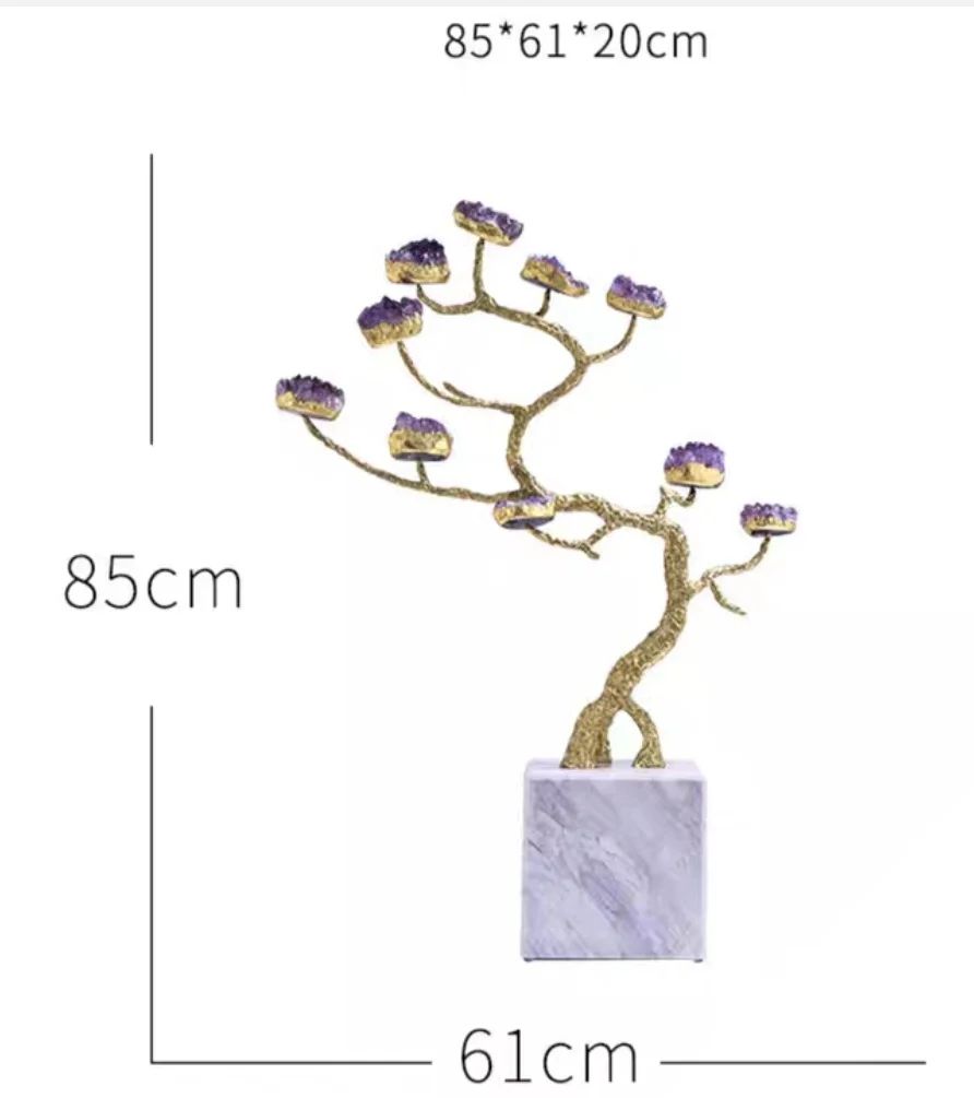Символическое мировое древо из благородной латуни, кристаллов натурального аметиста - отличное решение для современного, стильного интерьера, и символическое прикосновение к вечности. Красота, которая не только украшает нашу жизнь, но и вдохновляет, наполняя её смыслом.