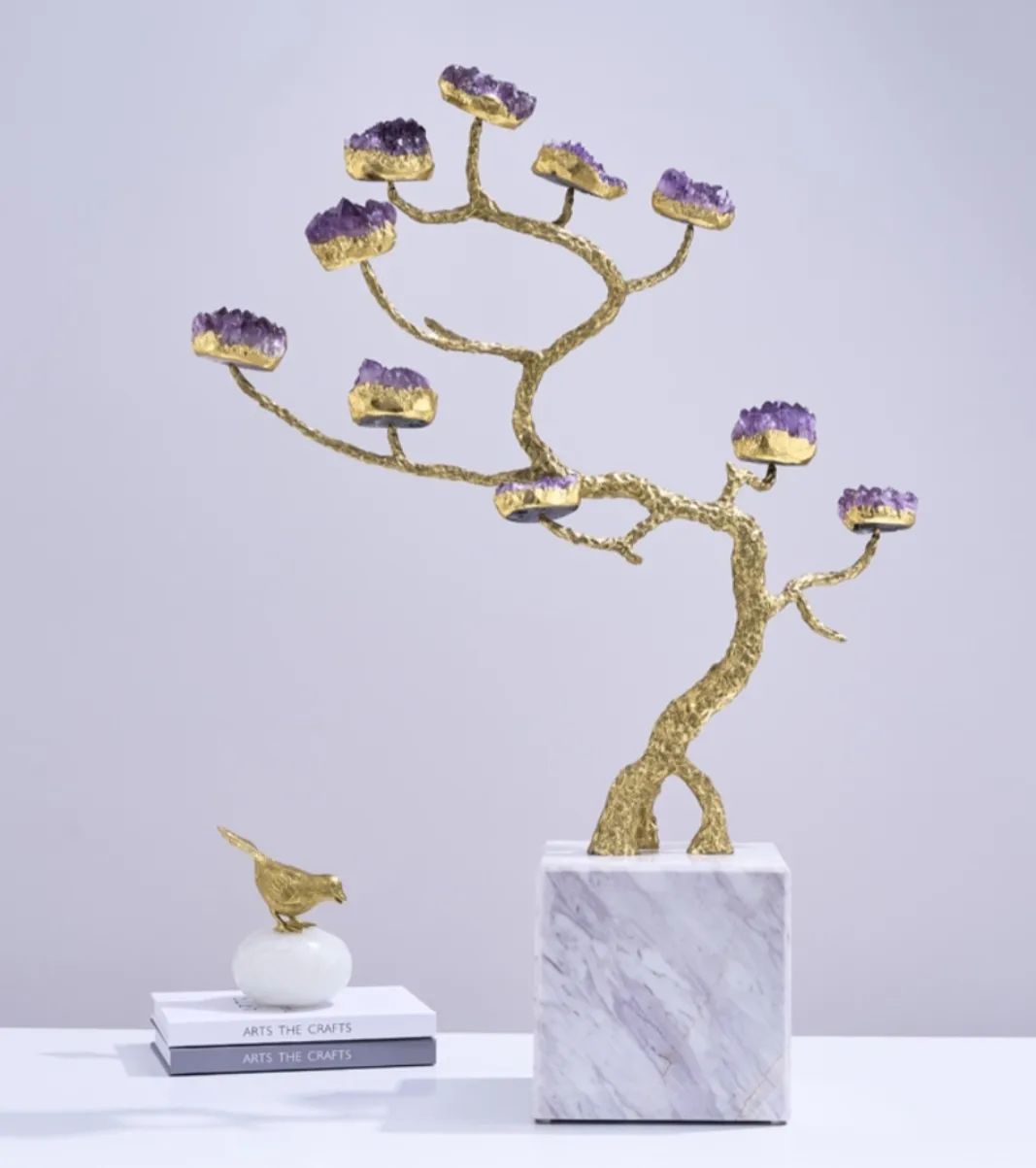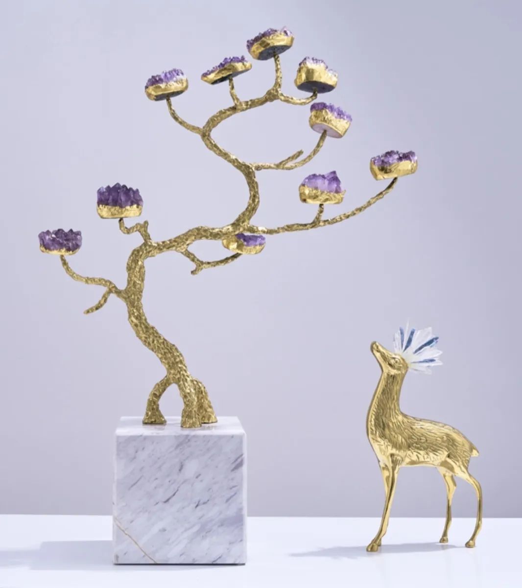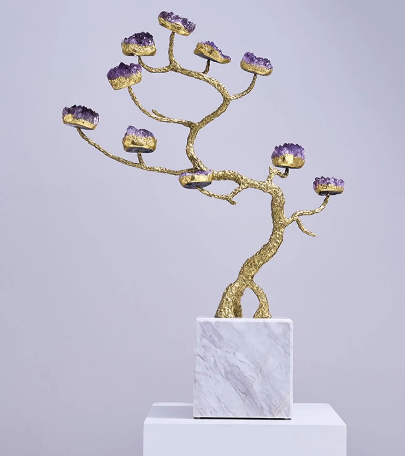 Символическое мировое древо из благородной латуни, кристаллов натурального аметиста - отличное решение для современного, стильного интерьера, и символическое прикосновение к вечности. Красота, которая не только украшает нашу жизнь, но и вдохновляет, наполняя её смыслом.