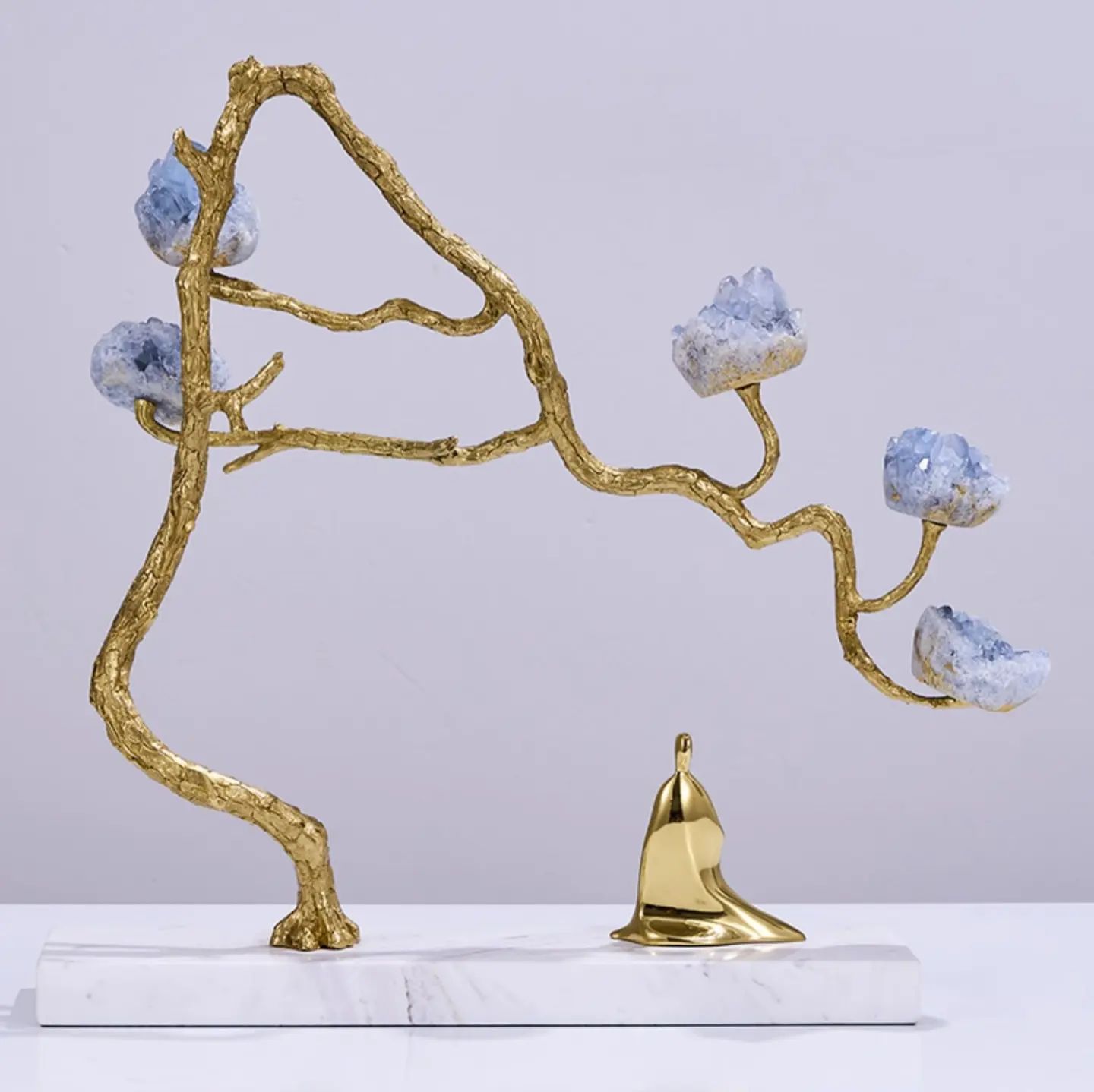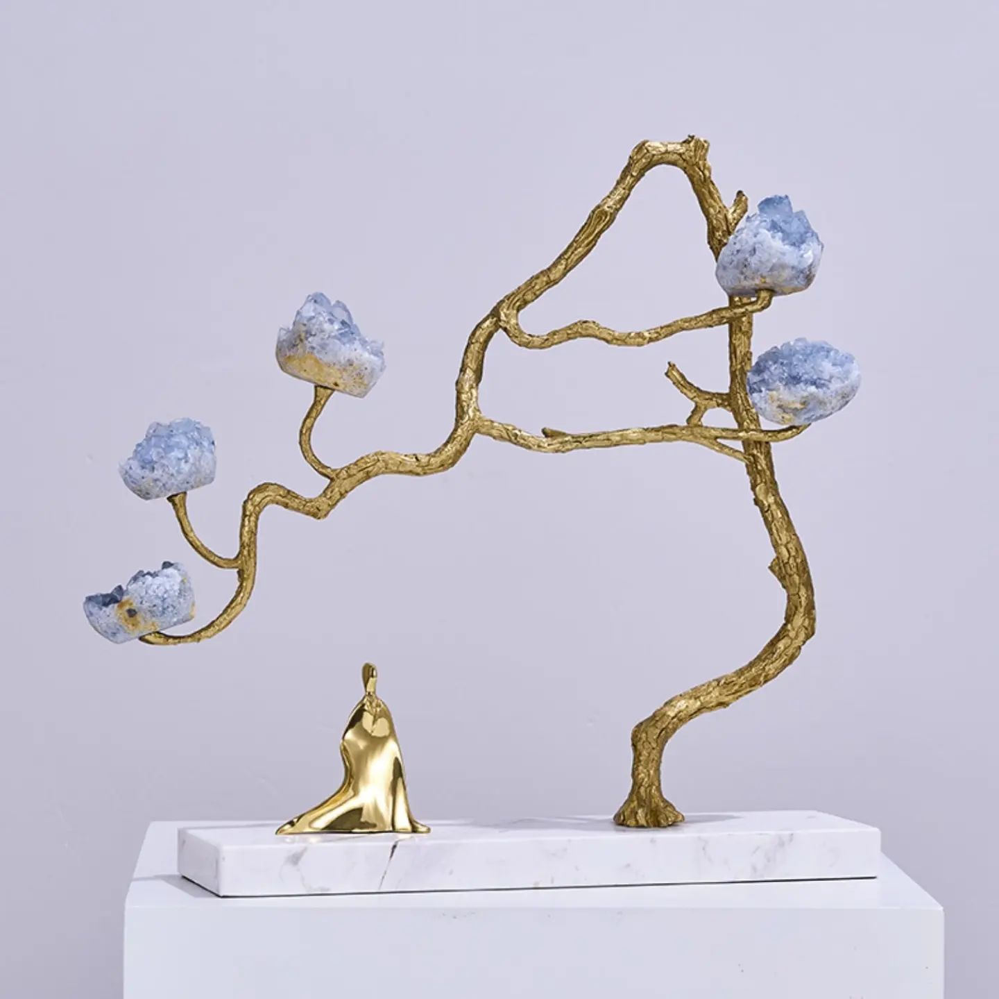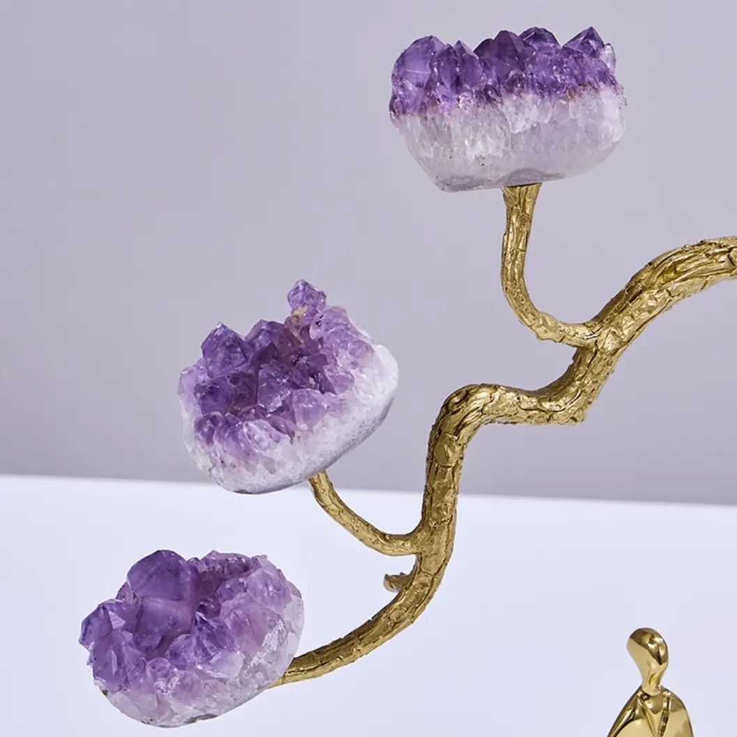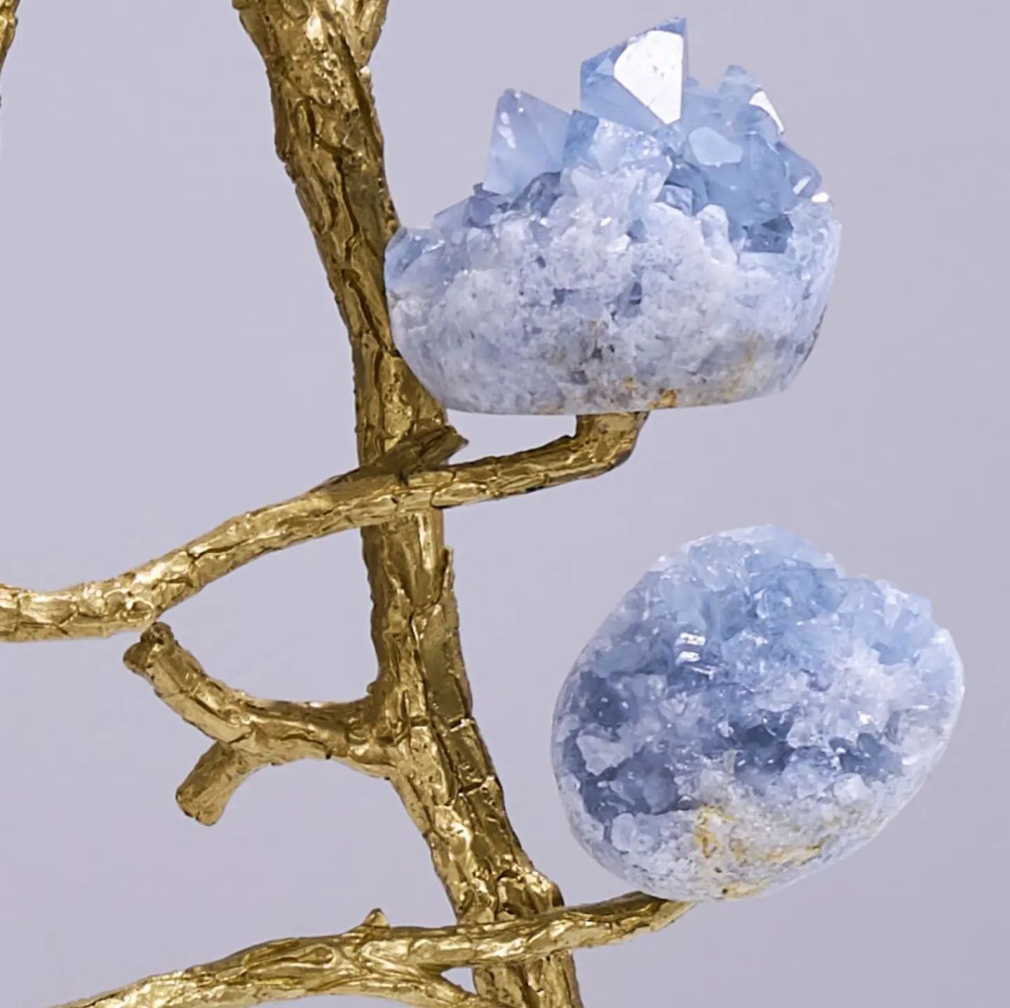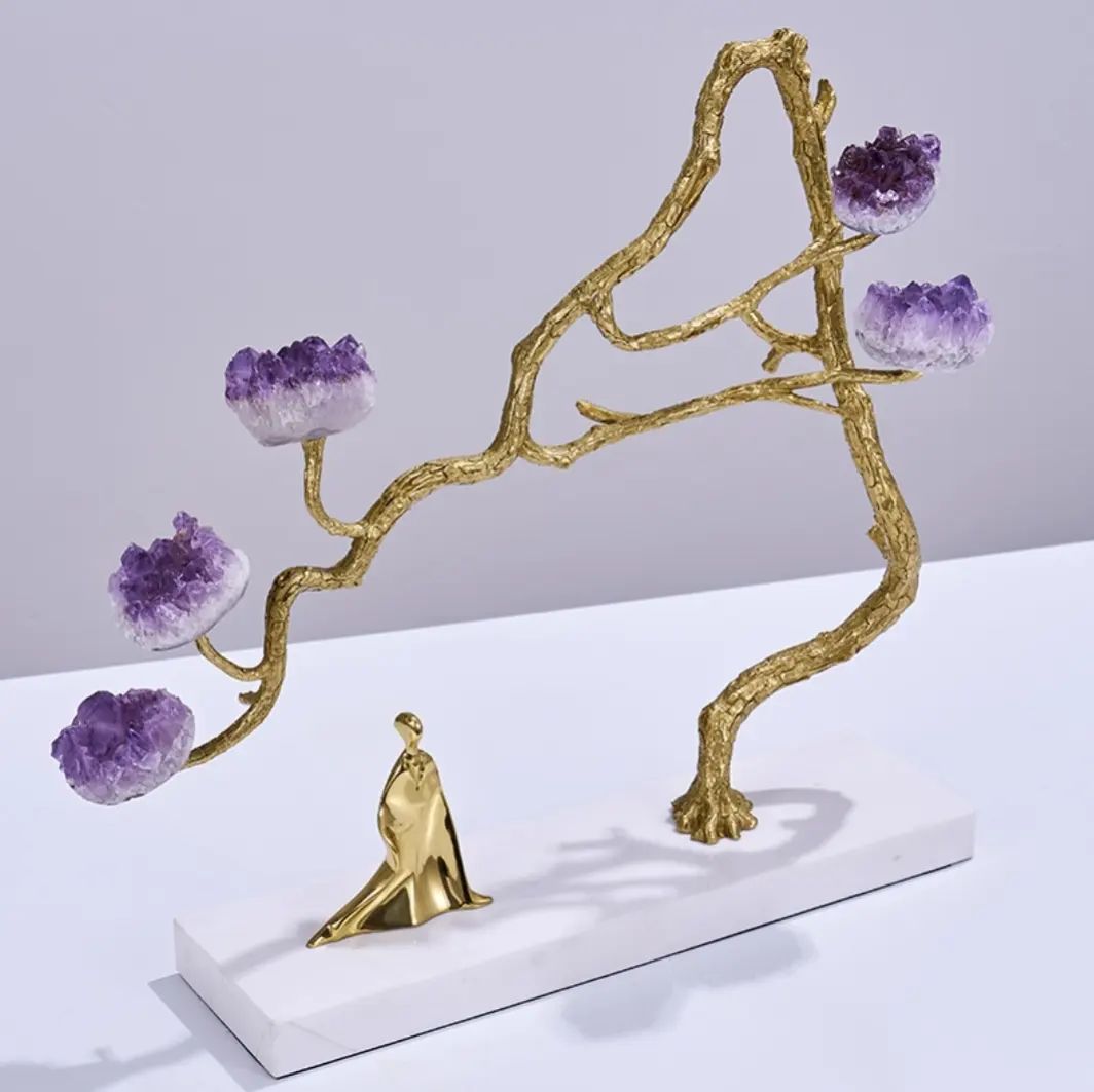 Яркий, стильный, вдохновляющий декор для домашнего и (или) делового интерьера. Натуральные кристаллы аметиста или целестина (на выбор), благородная латунь, мрамор.