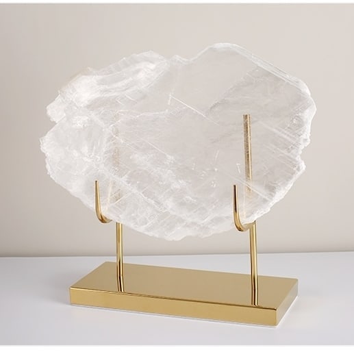 Очаровательные кристаллы кварца на изящных латунных подставках. Стильный декор Monsterior Gems, который качественно украсит современный интерьер – домашний и (или) деловой. Добавьте позитивной магии камня в ваше личное пространство.