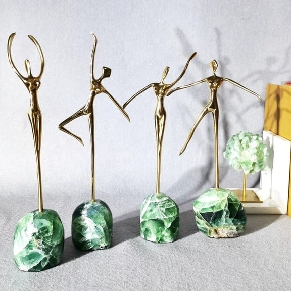 Очаровательный и актуальный декор Monsterior Gems – стильные человечки на подставке из натурального позолоченного флюорита. Оригинальное украшение для современного интерьера – домашнего и (или) делового. Сильный и позитивный символ стабильности и устойчивости в бурном движении времени.