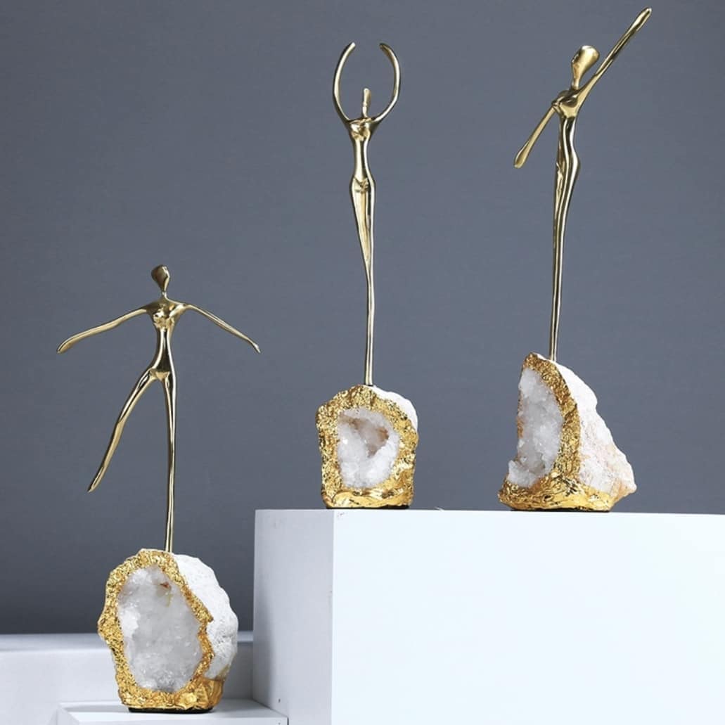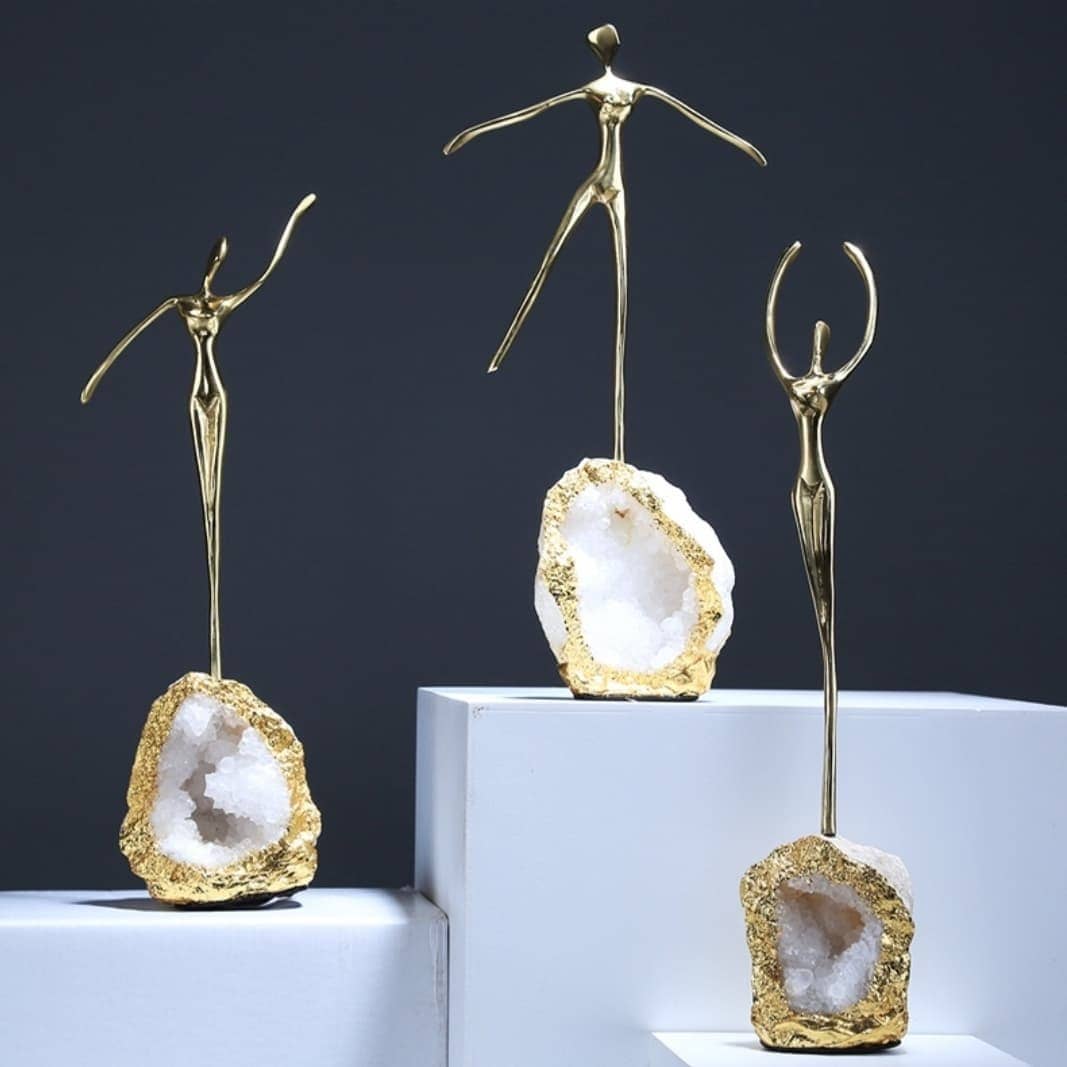 Очаровательный и актуальный декор Monsterior Gems – стильные человечки на подставке из жеоды кварца. Оригинальное украшение для современного интерьера – домашнего и (или) делового. Сильный и позитивный символ стабильности и устойчивости в бурном движении времени.