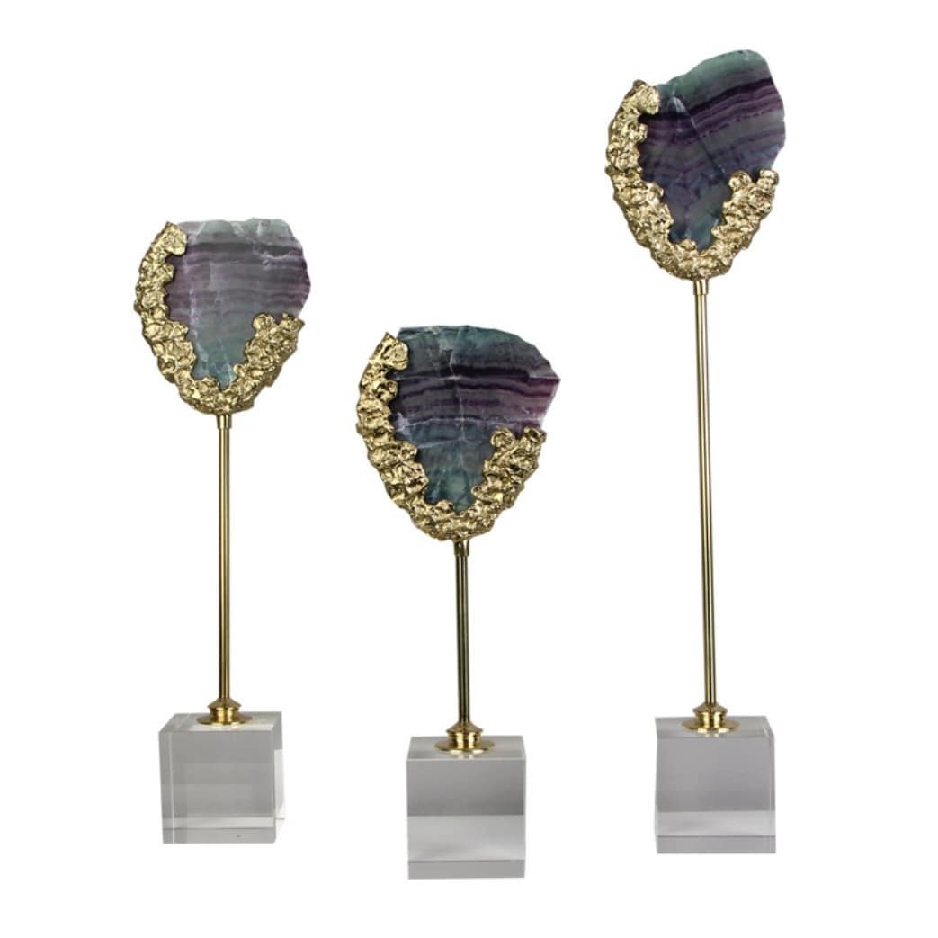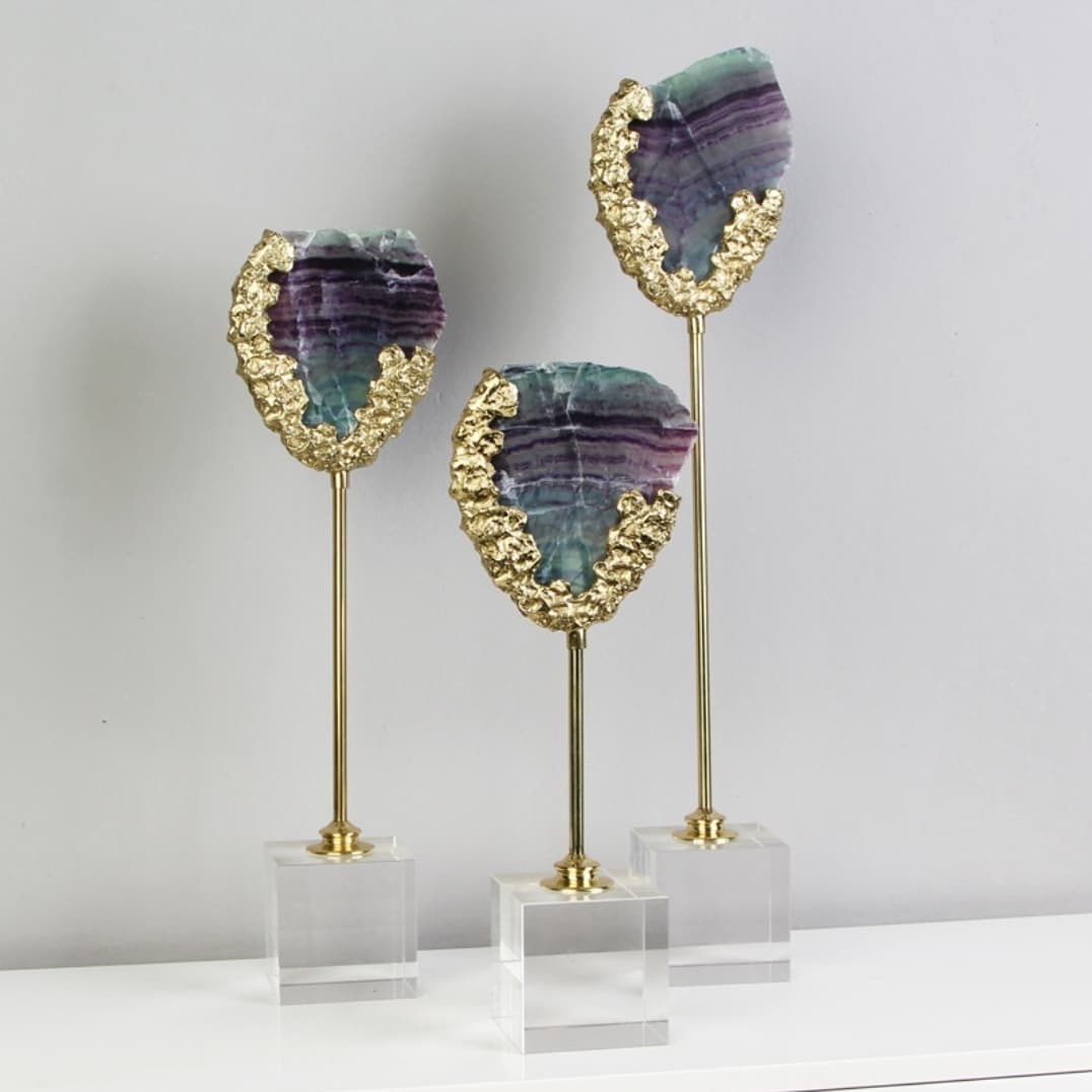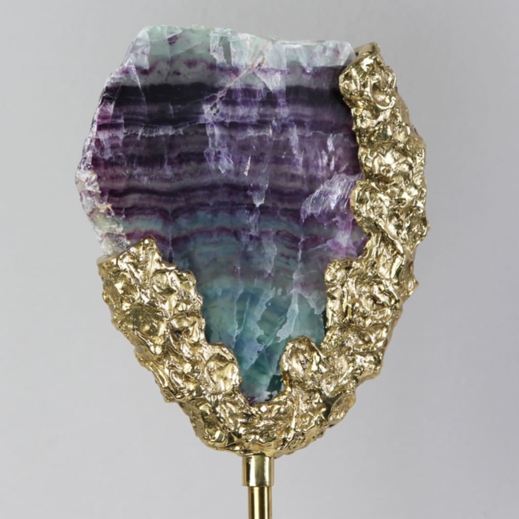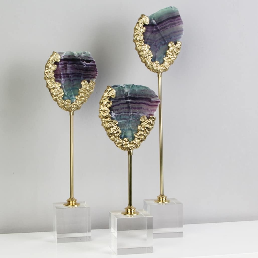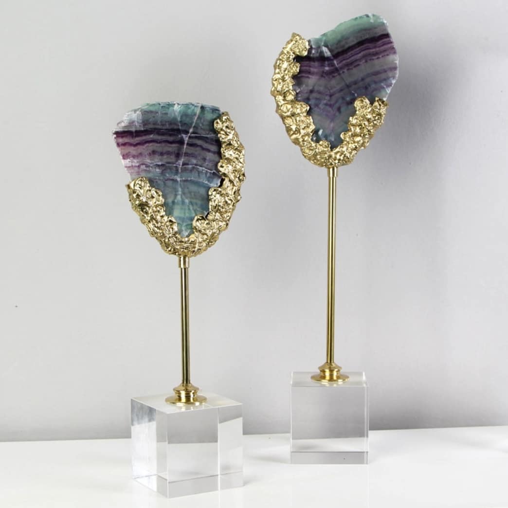 Прекрасный декор в виде сердечек из отборного флюорита, украшенных благородной латунью. Классное, яркое решение для домашнего и (или) делового интерьера. Считается, что флюорит отлично «впитывает» негатив, защищает от недоброжелателей, развивает способности предвидения и т.д.