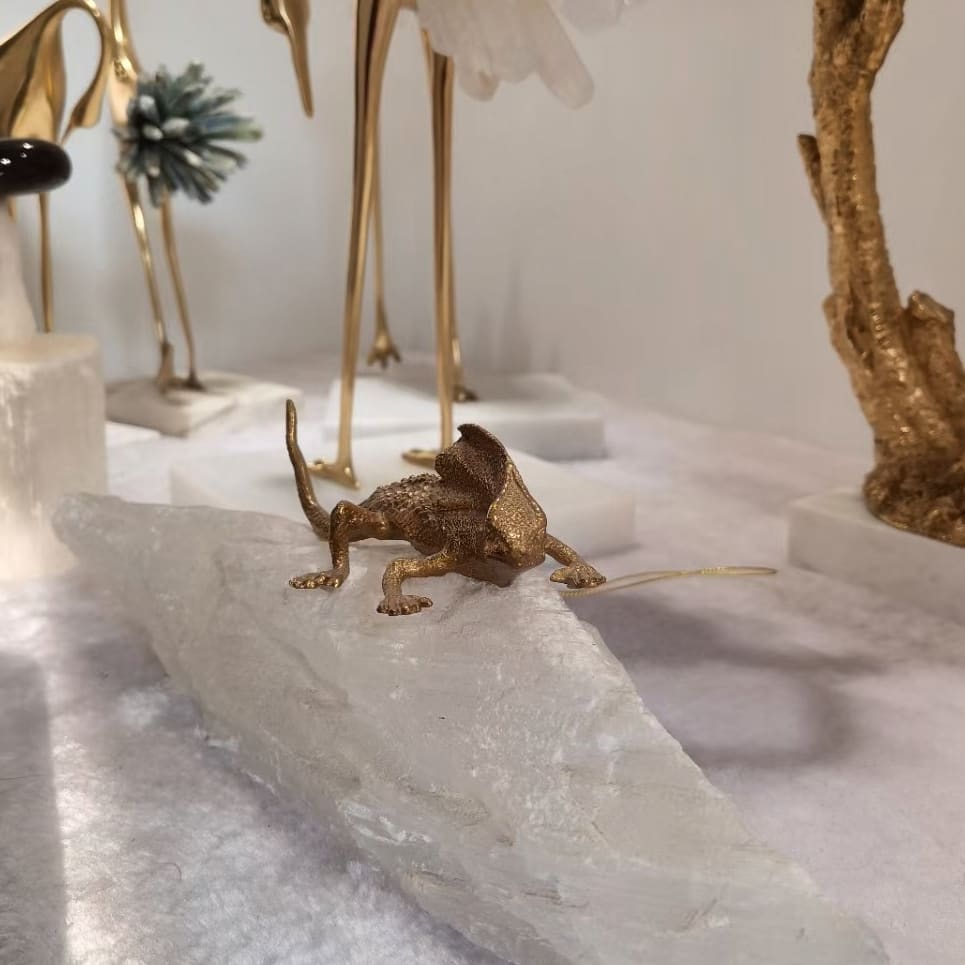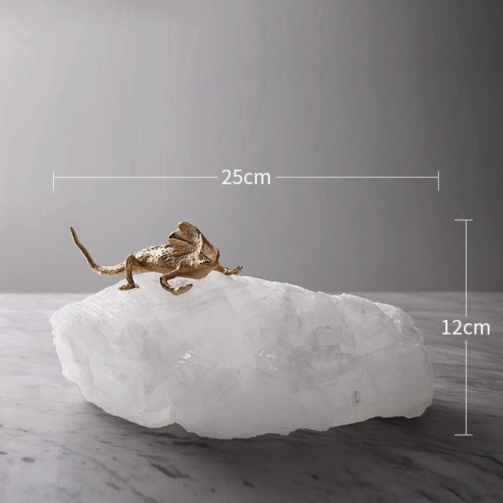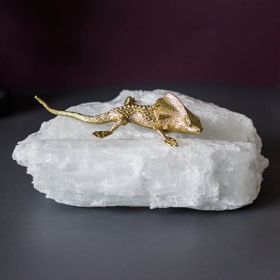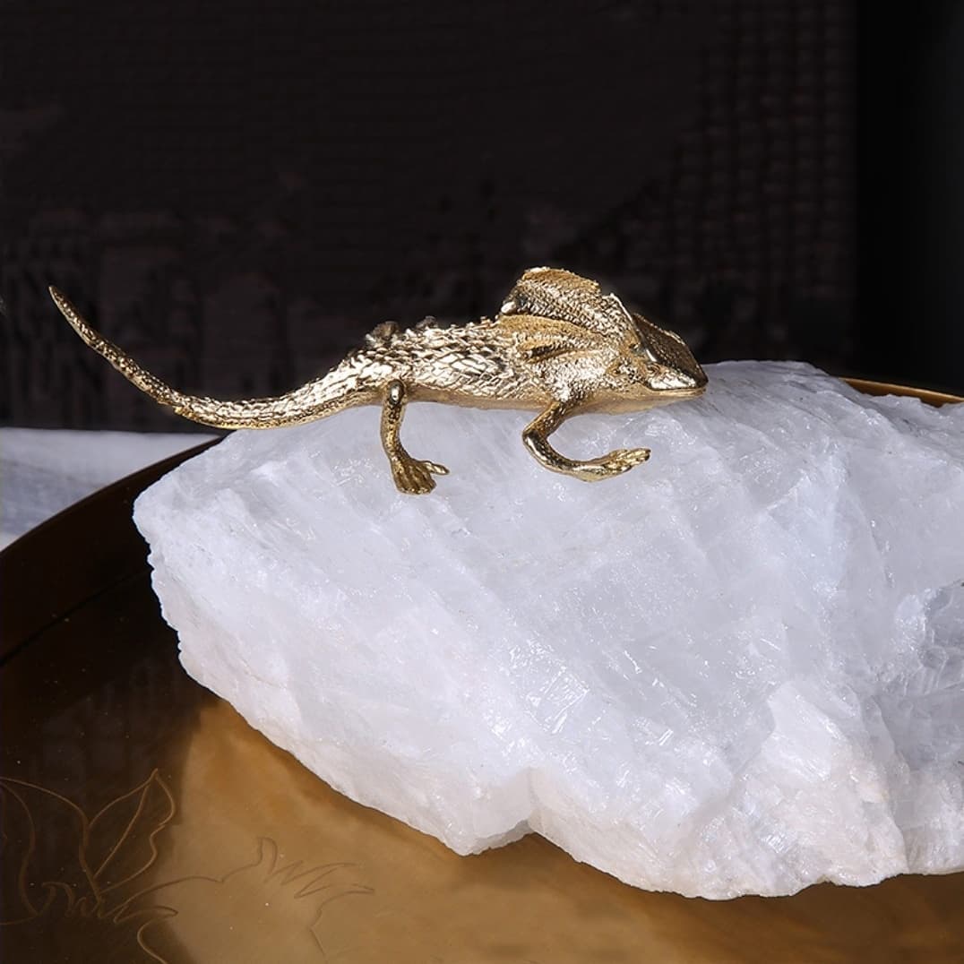 Очаровательная ящерка-василиск на куске отборного, беслонежного кварца. Отличный, оригинальный декор для вашего личного пространства – домашнего и (или) делового. Древний, действенный и немного таинственный символ земной роскоши и изобилия!