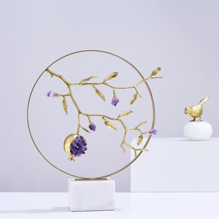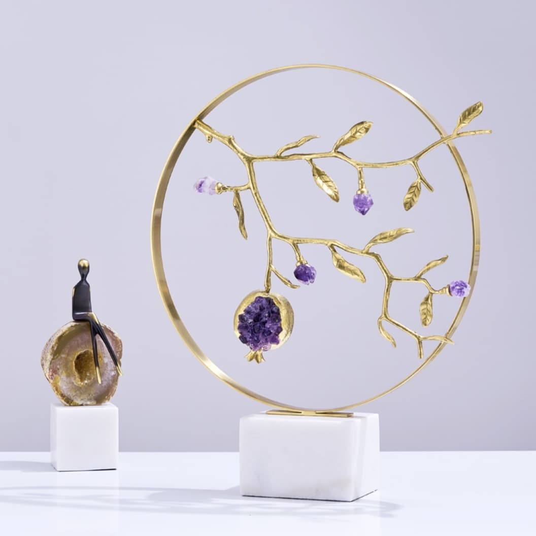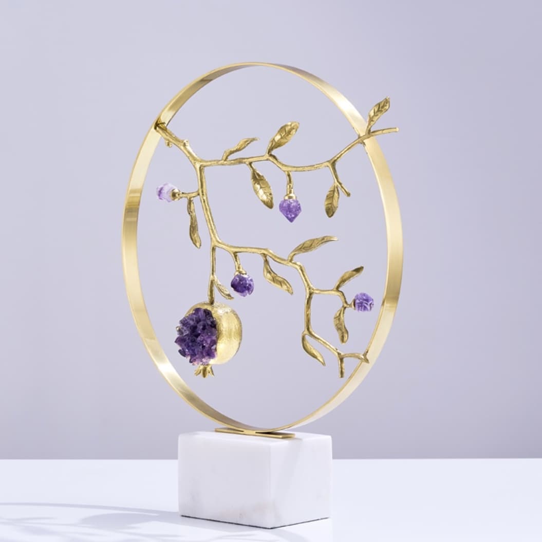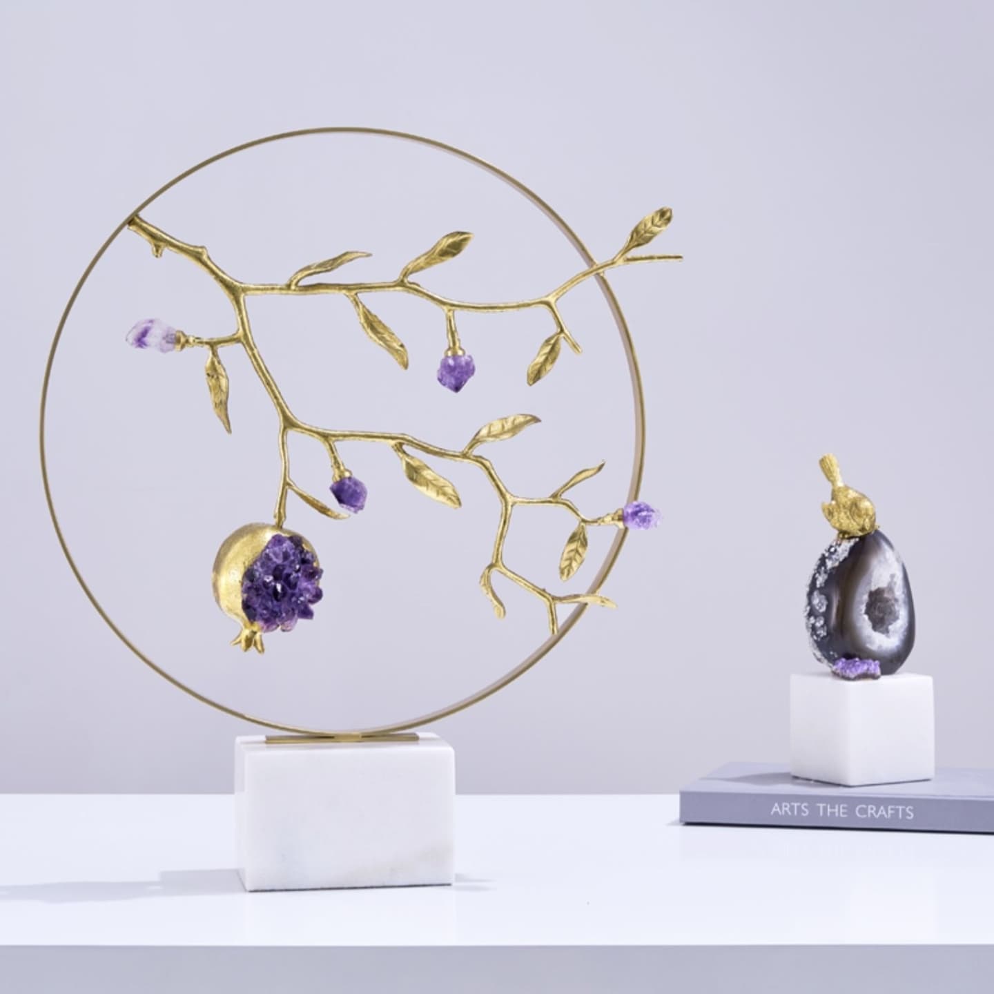 Статуэтка Ветка граната с аметистом в кольце на подставке