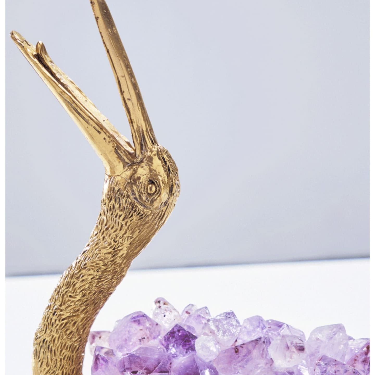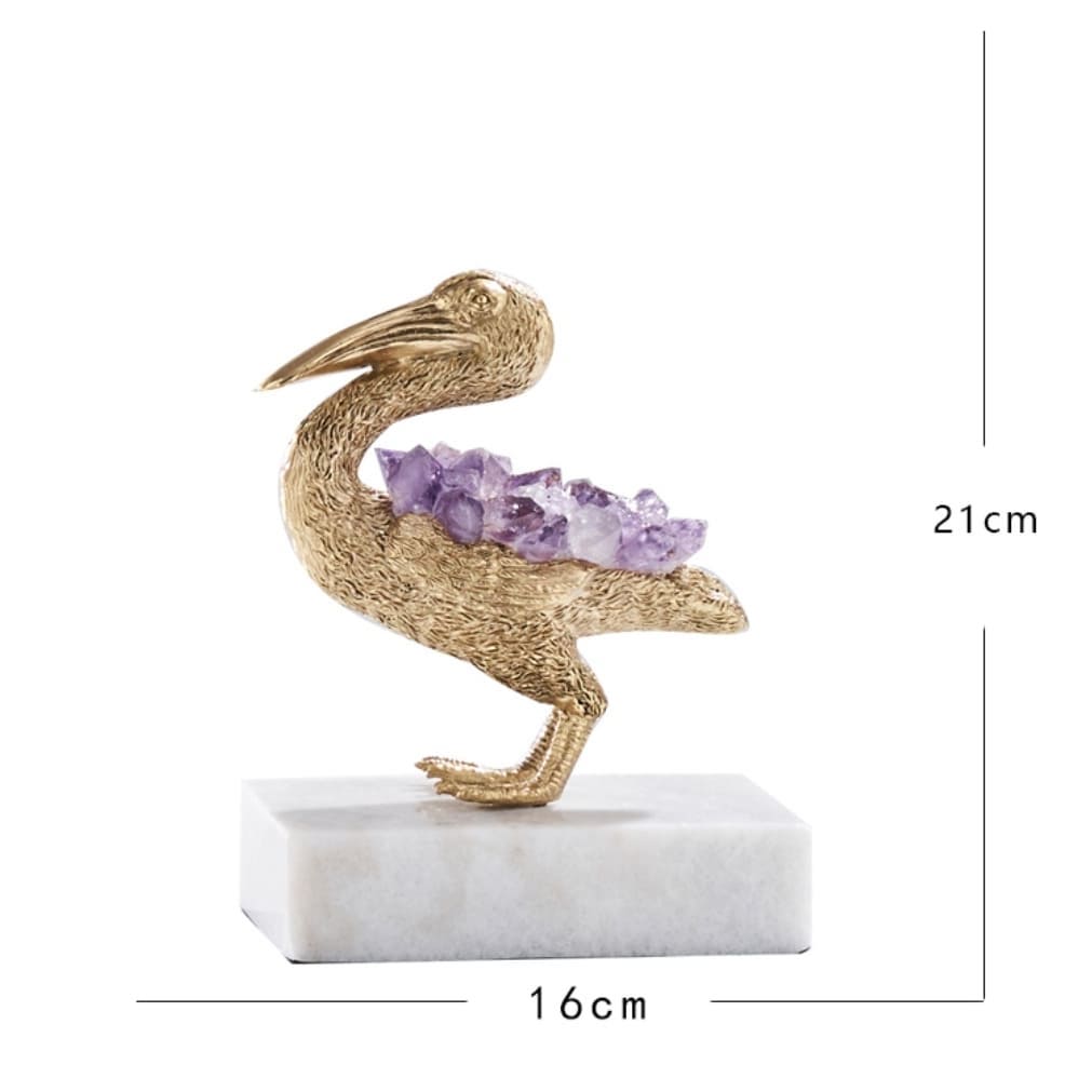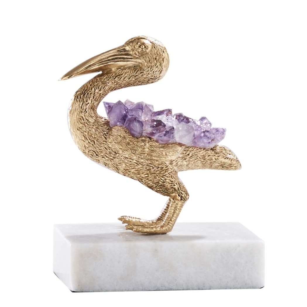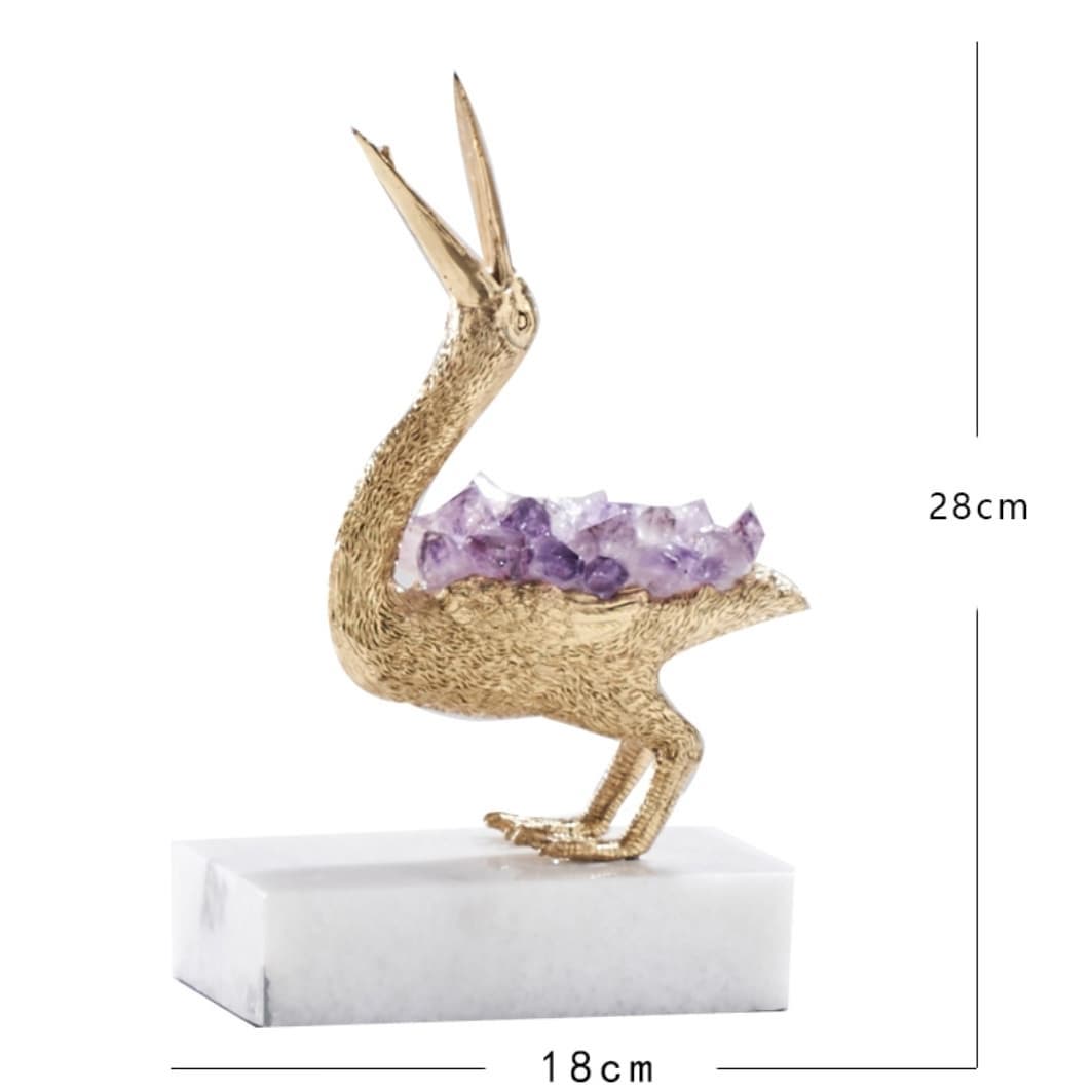 Очаровательные пеликанчики из латуни и отборных кристаллов аметиста. Подставка – натуральный, белоснежный мрамор. Позитивный символизм родительской любви, благородства и милосердия. Красивое и яркое решение для современного, статусного интерьера – домашнего и (или) делового.