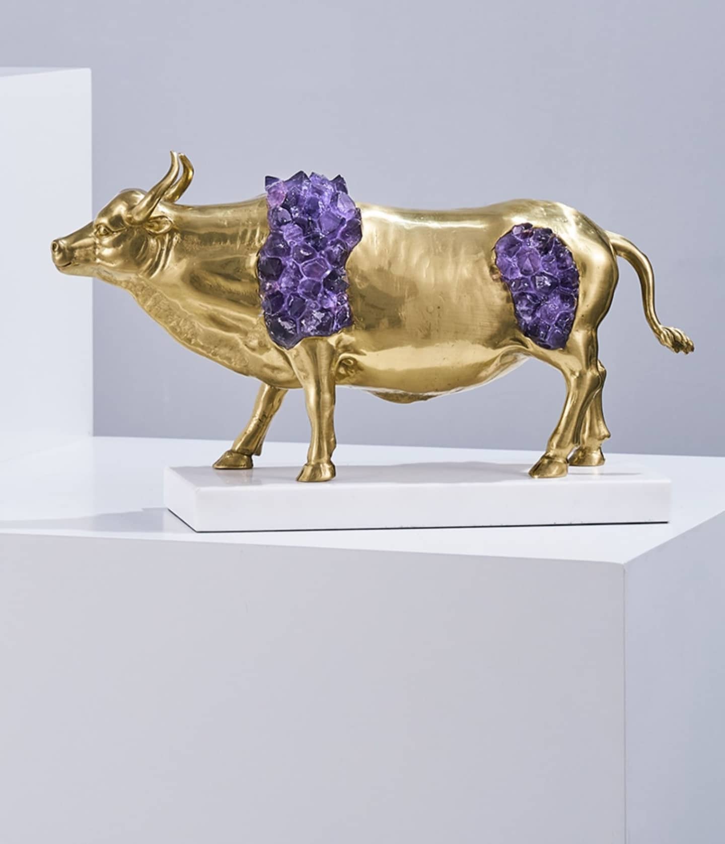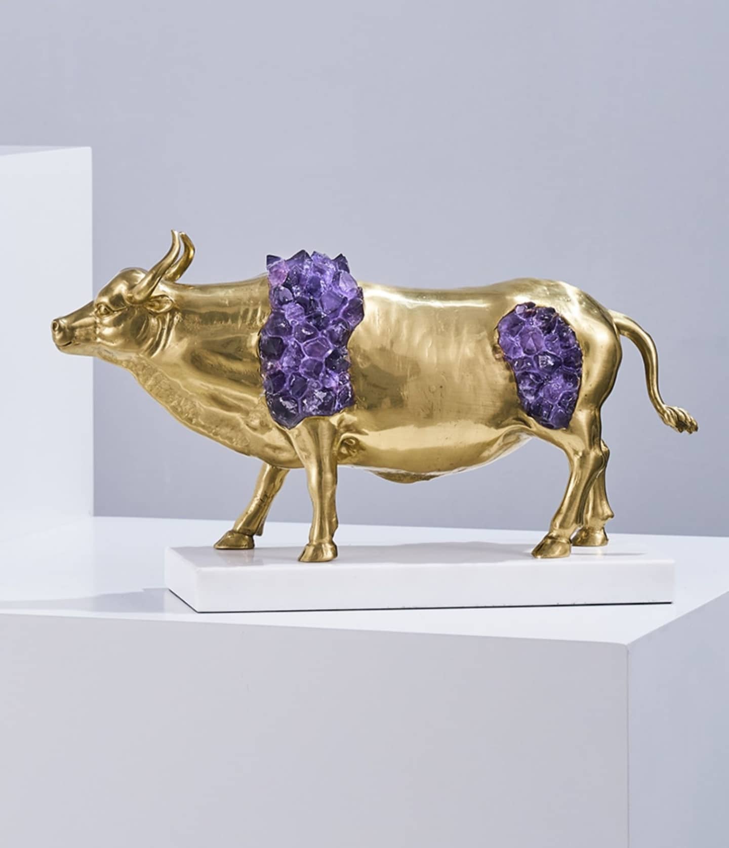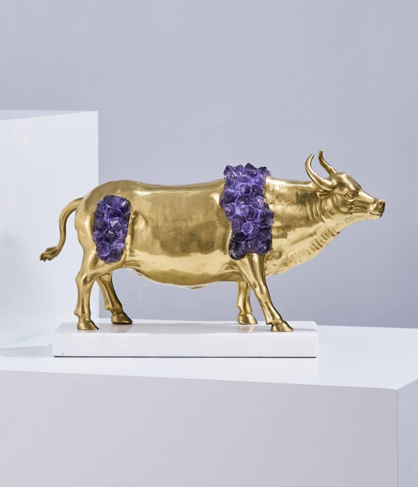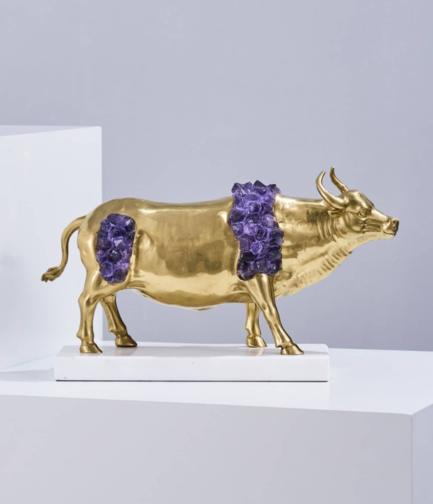 Блестящие быки из благородной латуни и натуральных кристаллов аметиста. Подставка – белоснежный мрамор. Красивый, насыщенный мощной энергией декор. Отлично будет смотреться в домашнем и (или) деловом интерьере. Рекомендуется всем, кто рожден под знаком Тельца, и кто проявляет максимум усилий в достижении своих жизненных целей.