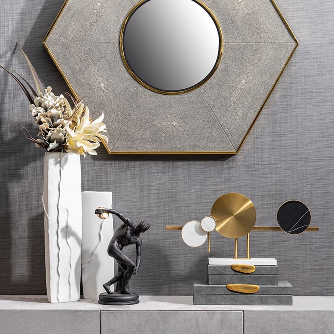 Очаровательный, немного таинственный, продвинутый декор из латуни и натурального мрамора. Вечная тема Ян и Инь – в несколько завуалированном варианте! Гармония и равновесие двух противоположностей, символически выраженное в этой изящной красоте. Отличное решение для домашнего и (или) делового интерьера.
