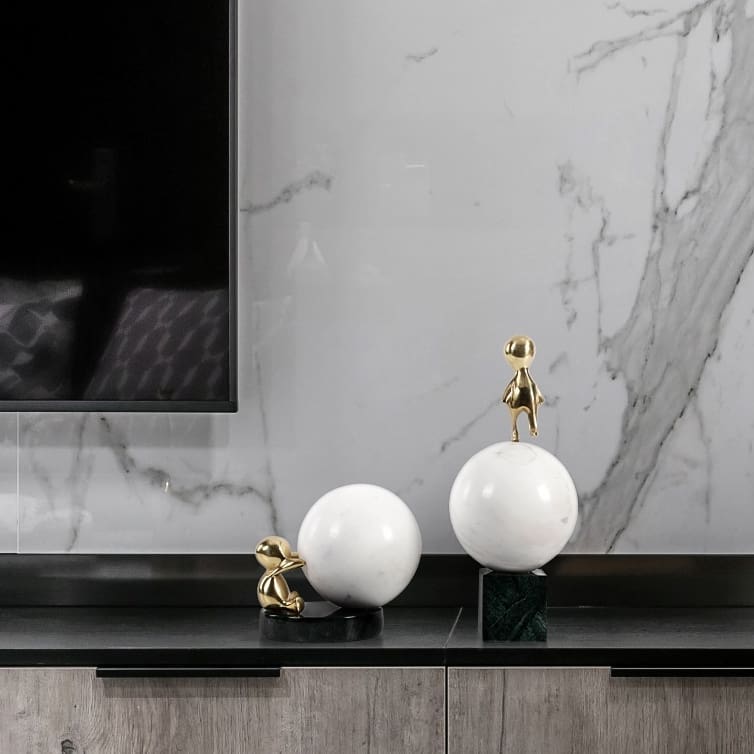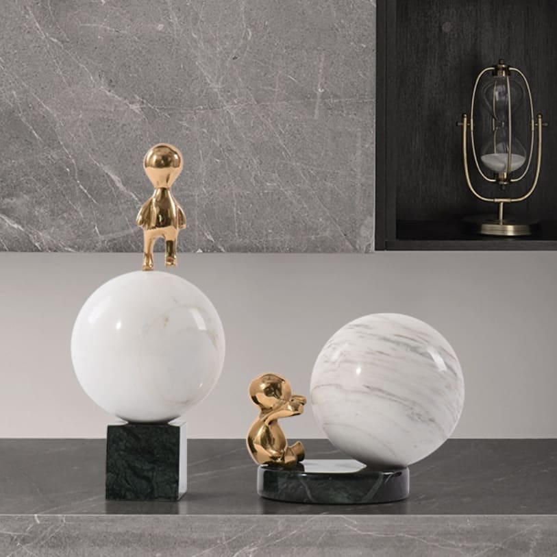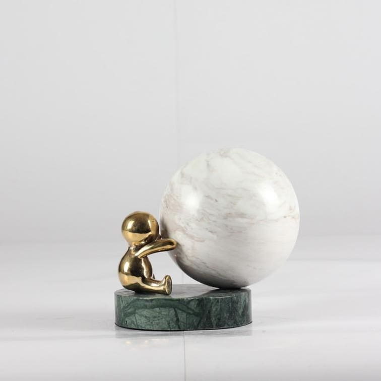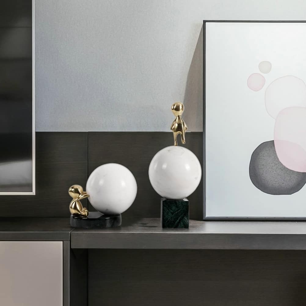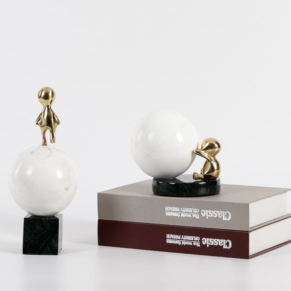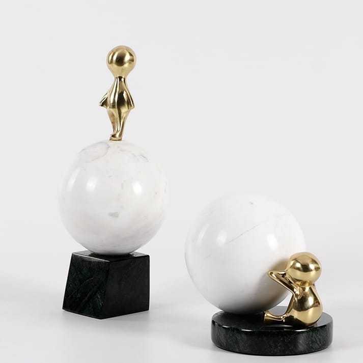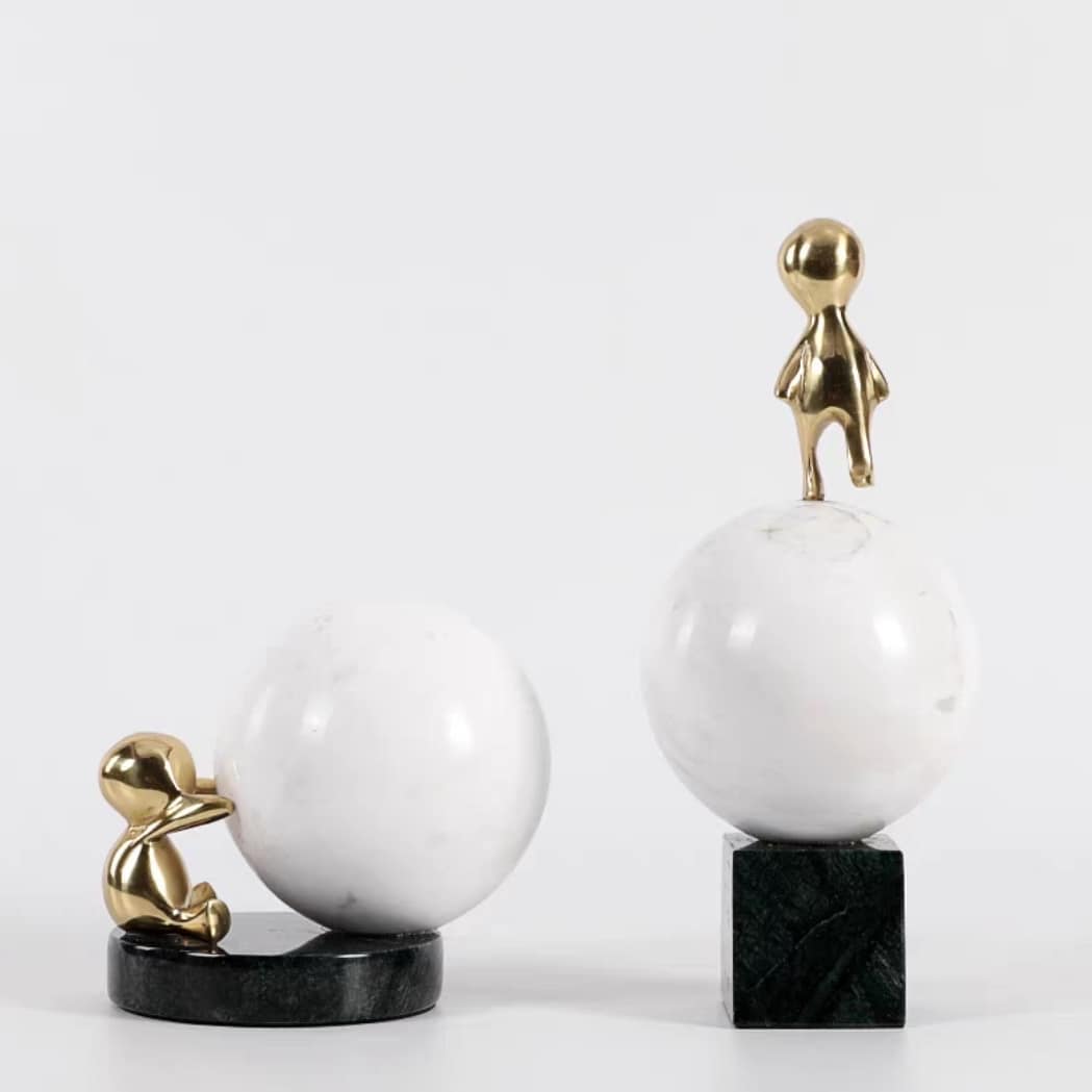 Классный декор из благородной латуни и натурального мрамора. Позитивные и явно упорные, настойчивые фигурки человечков, отлично впишутся в современный стильный интерьер – домашний и (или) деловой. Добавят в него яркости и уникальности.