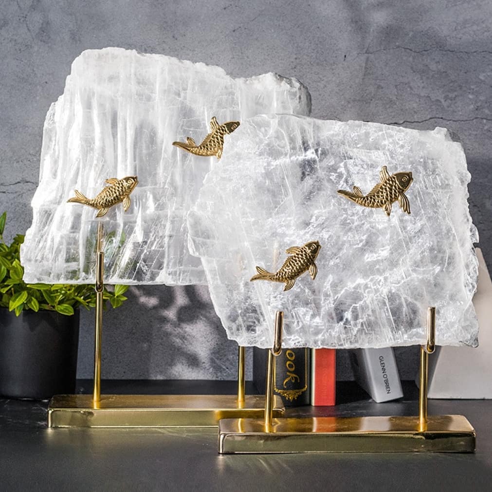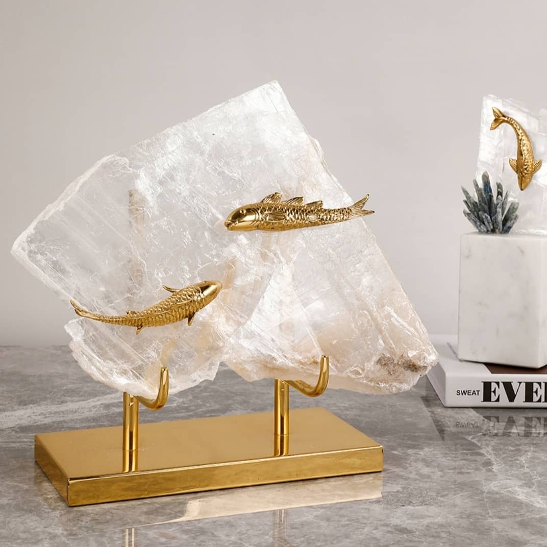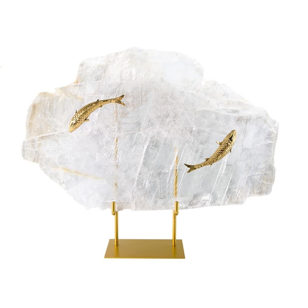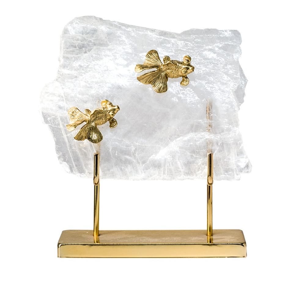 Статуэтка Золотые рыбки на кварце подставка латунь