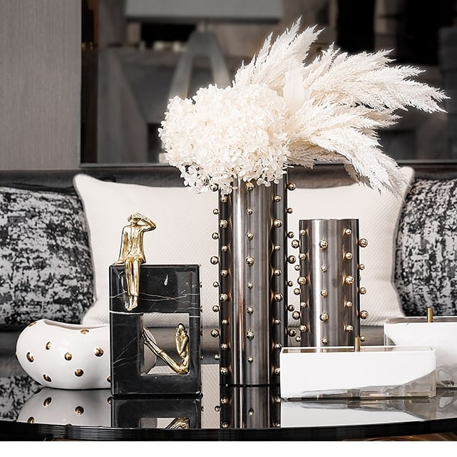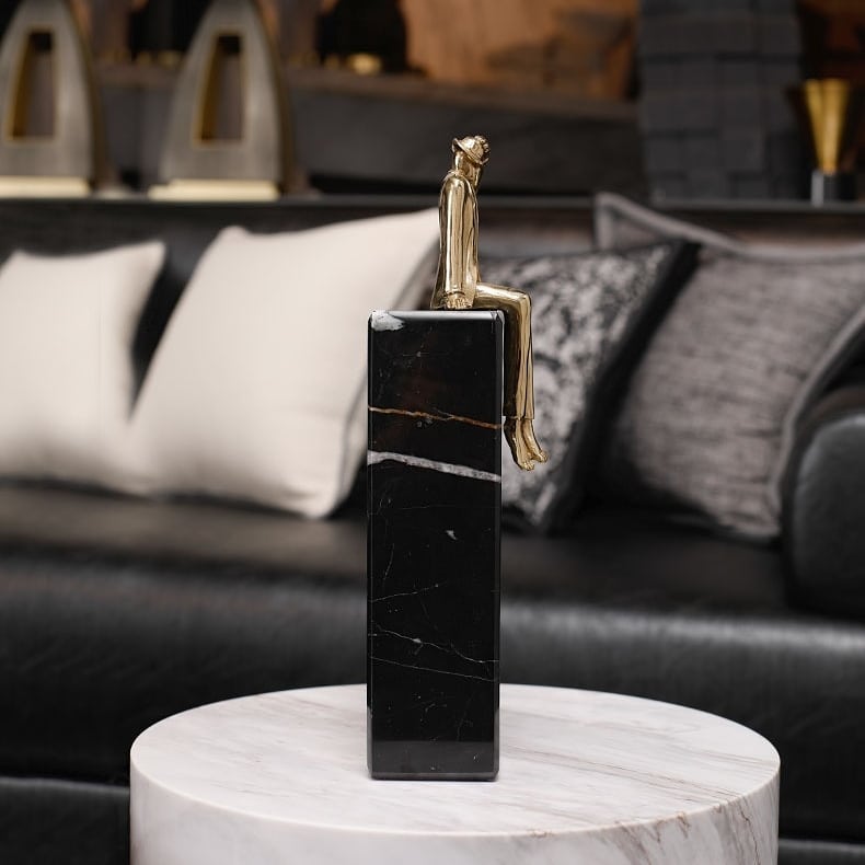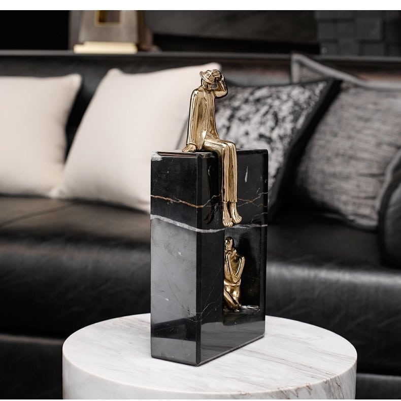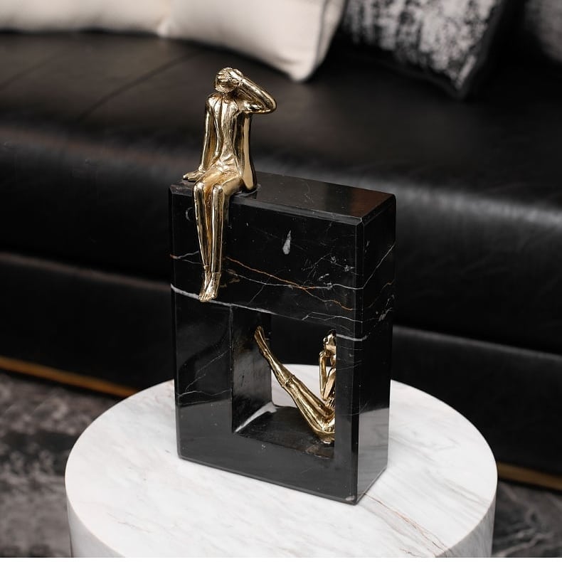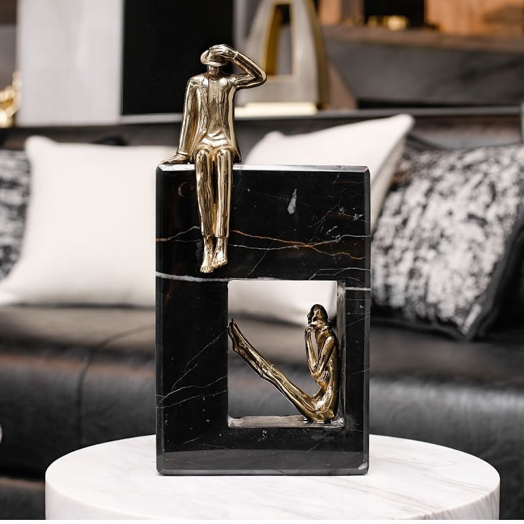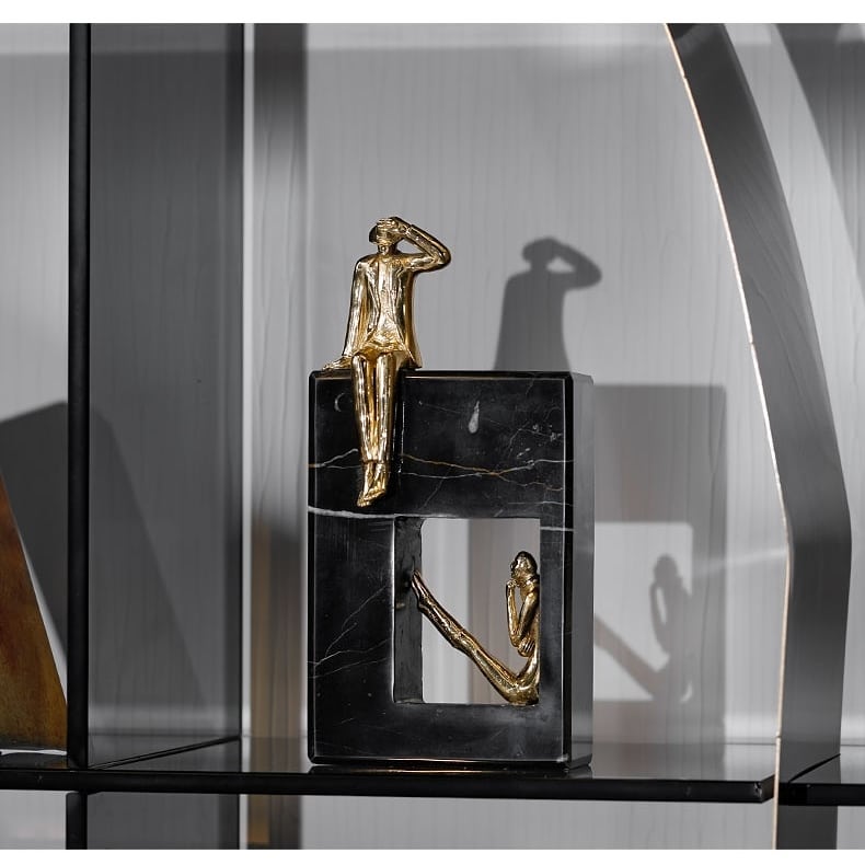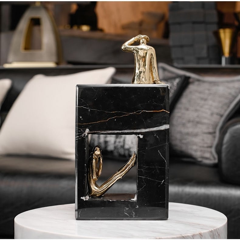 Очень стильный декор! Каждый, для себя, моментально ответит на вопрос – с кем ассоциируются эти фигурки? И что они пытаются выразить. И ответы будут – разными, и это – здорово. Красиво, оригинально, и даже уникально, да. Роскошная вещь для вашего личного пространства. Натуральный мрамор и благородная латунь.