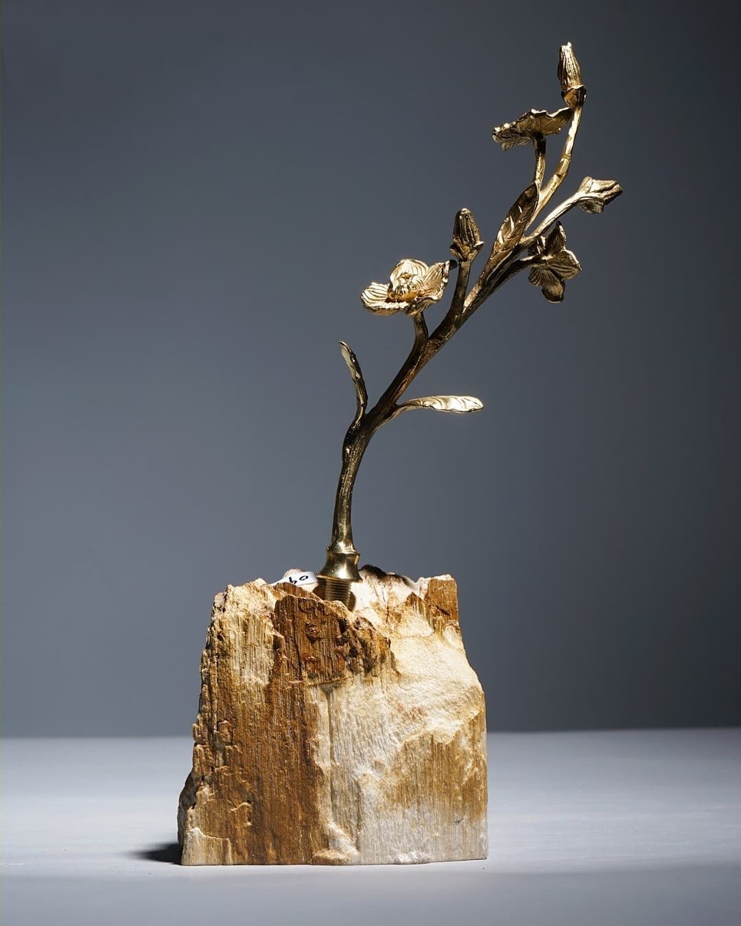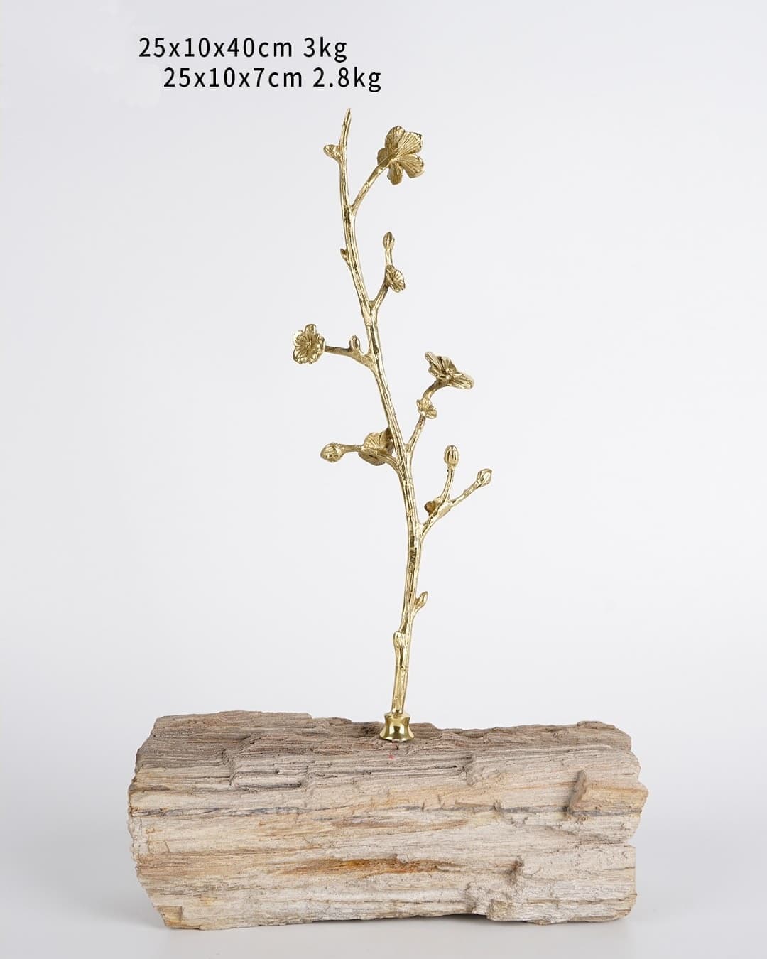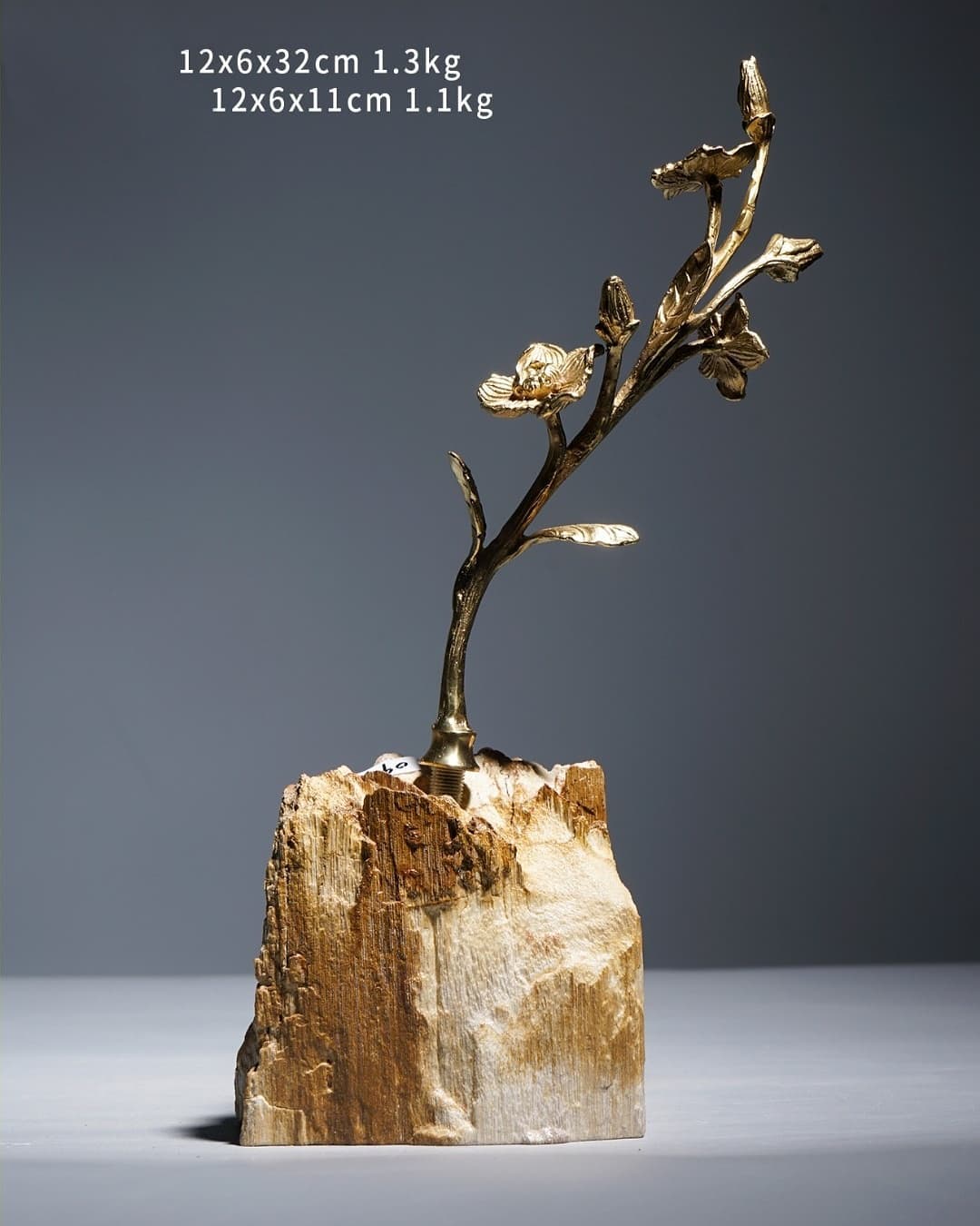 В основе этой прекрасной композиции – настоящее окаменелое дерево, возрастом более 200 млн лет! Молодые «побеги» – из благородной латуни. Шикарный декор для стильного, статусного интерьера. Красота, созданная самой природой.