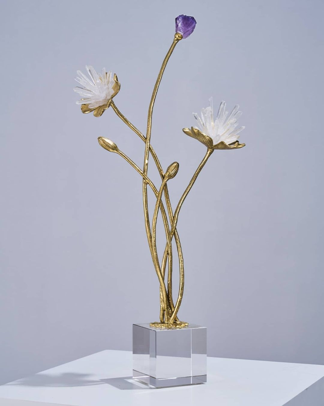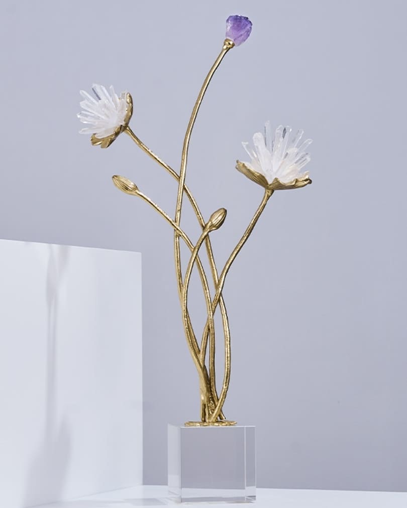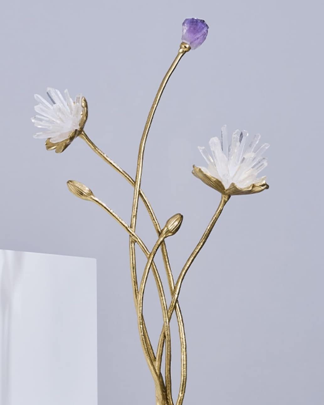 Очаровательные букеты из цветов со стебельками из латуни и соцветиями – из натуральных кристаллов – аметиста, горного хрустали и селенита (на выбор)! Изящная красота, которая не требует полива и ухода. Декор, который отлично впишется в стильный уникальный домашний и (или) деловой интерьер.