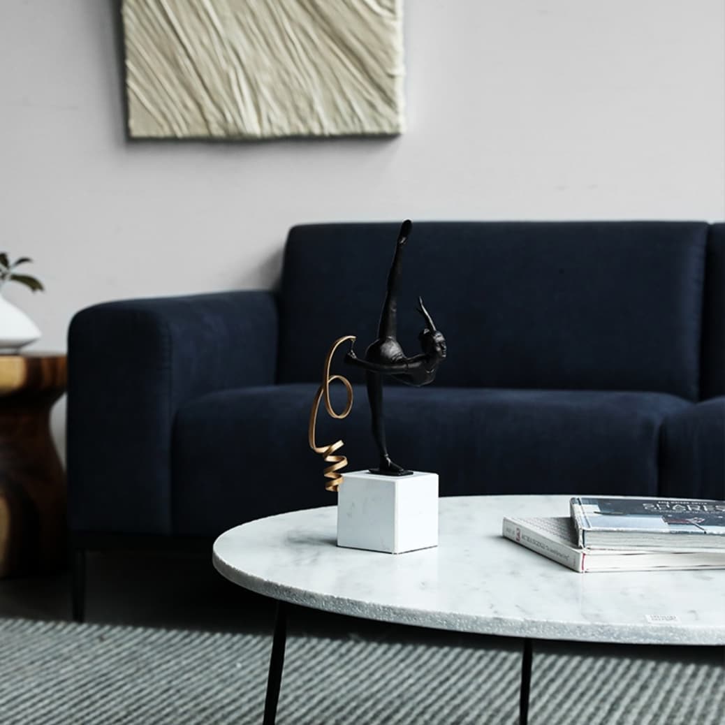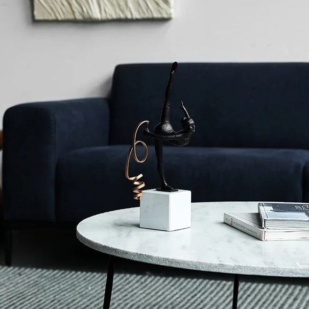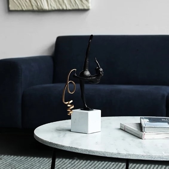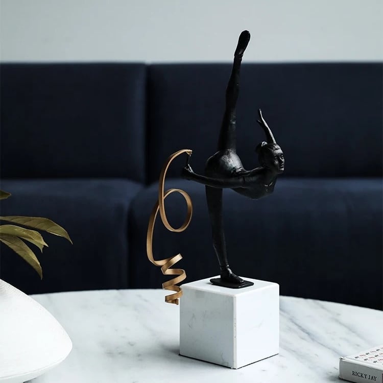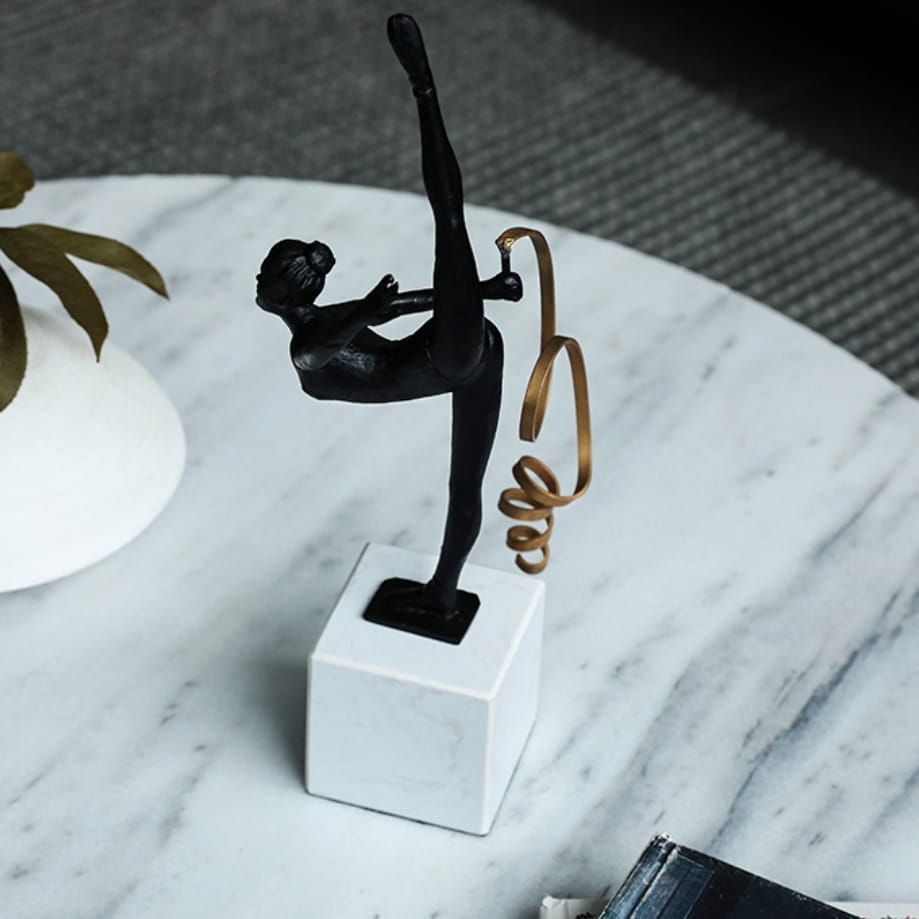 Очаровательная художественная гимнастка с ленточкой. Легкая и воздушная, несмотря на то, что изготовлена из кованого железа, а возвышается на подставке из натурального мрамора. Отличный декор для всех ценителей красоты и любителей этого замечательного вида спорта.
