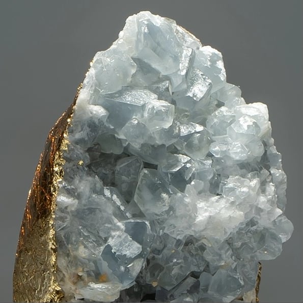 Роскошный кристалл целестина – в наряде из сусального золота. Очаровательный декор с заслуженной претензией на звание полезного, особенно для творческих людей, артефакта. Ну и не только для них, конечно. Считается, что мужчинам целестин придает уверенности, а женщинам – притягательности. А ещё этот замечательный минер помогает максимальному раскрытию талантов и творческих способностей.