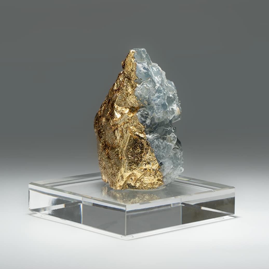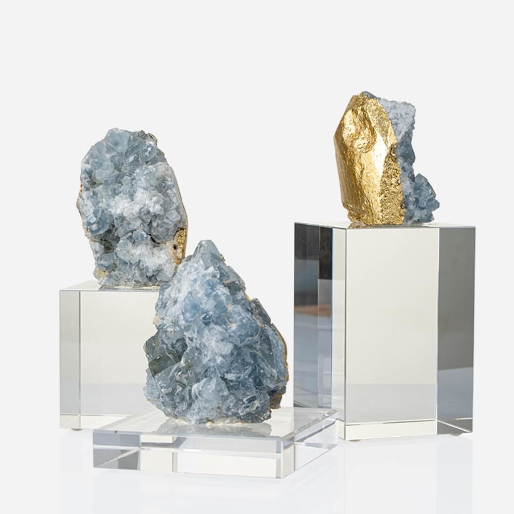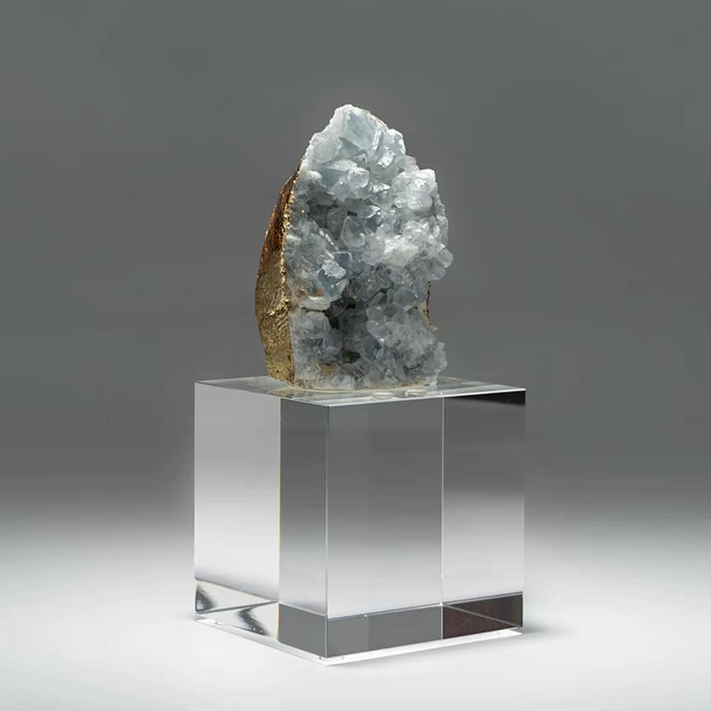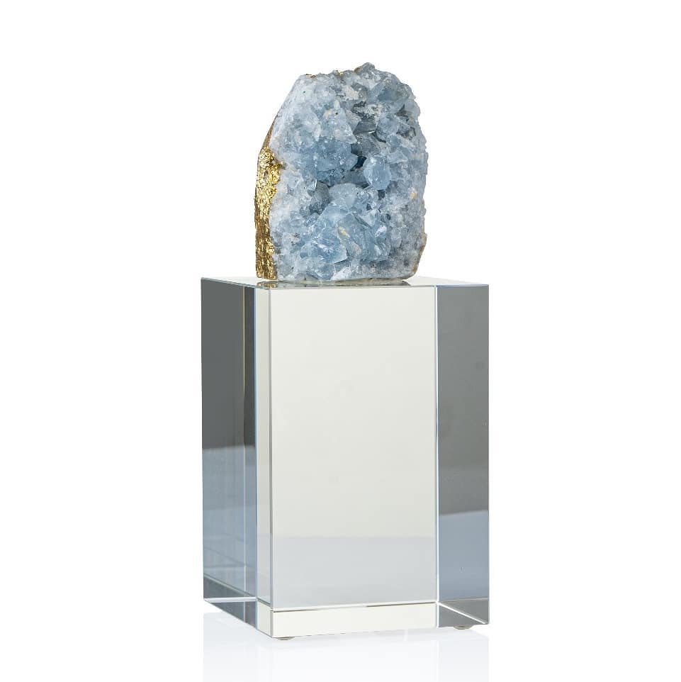 Статуэтка Кристалл целестина в позолоте на подставке из стекла