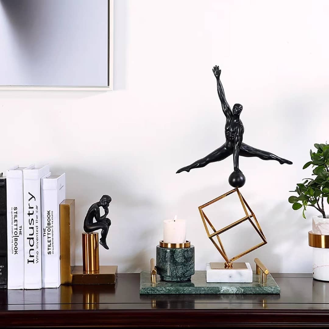 Роскошный, вдохновляющий декор. Оригинальные, насыщенные мотивирующей энергией фигурки из кованого железа, благородной латуни и натурального мрамора. Стильное решение для украшения домашнего и (или) делового интерьера. Красивое и напоминание о том, что всё зависит от нас, нашего восприятия и реакций.
