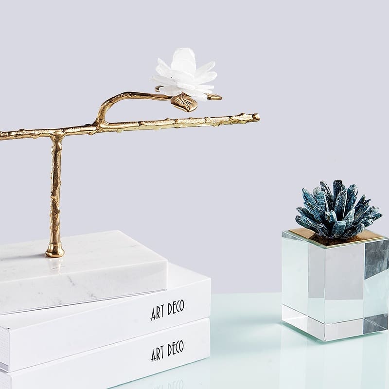 Очаровательный декор, изготовленный из благородной латуни, кристаллов кварца, белоснежного мрамора.