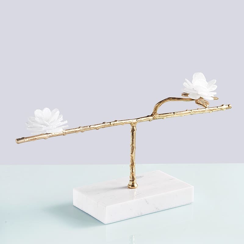 Статуэтка Ветка-равновесие с кварцем на подставке из мрамора