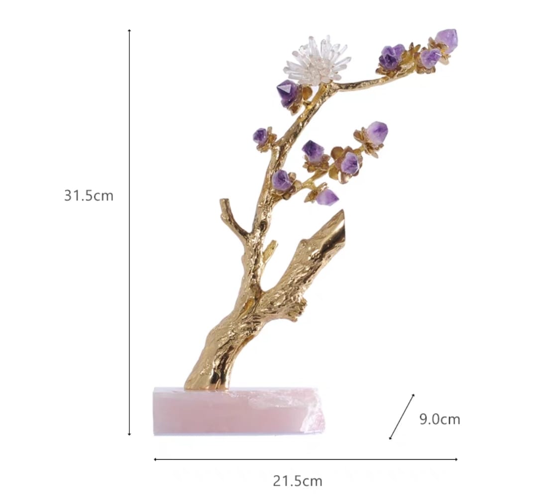 Роскошный цветок из горного хрусталя, кристаллов аметиста, нежного розового кварца и благородной латуни. Классное сочетание и позитивная магия самоцветов для всех, кто хочет любить и быть любимым. Цветок отлично будет смотреться как в домашнем, так и в деловом интерьере.