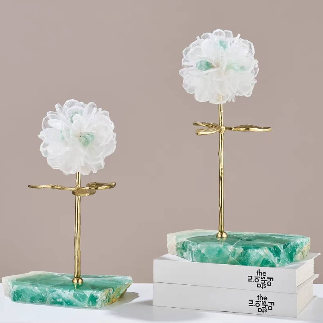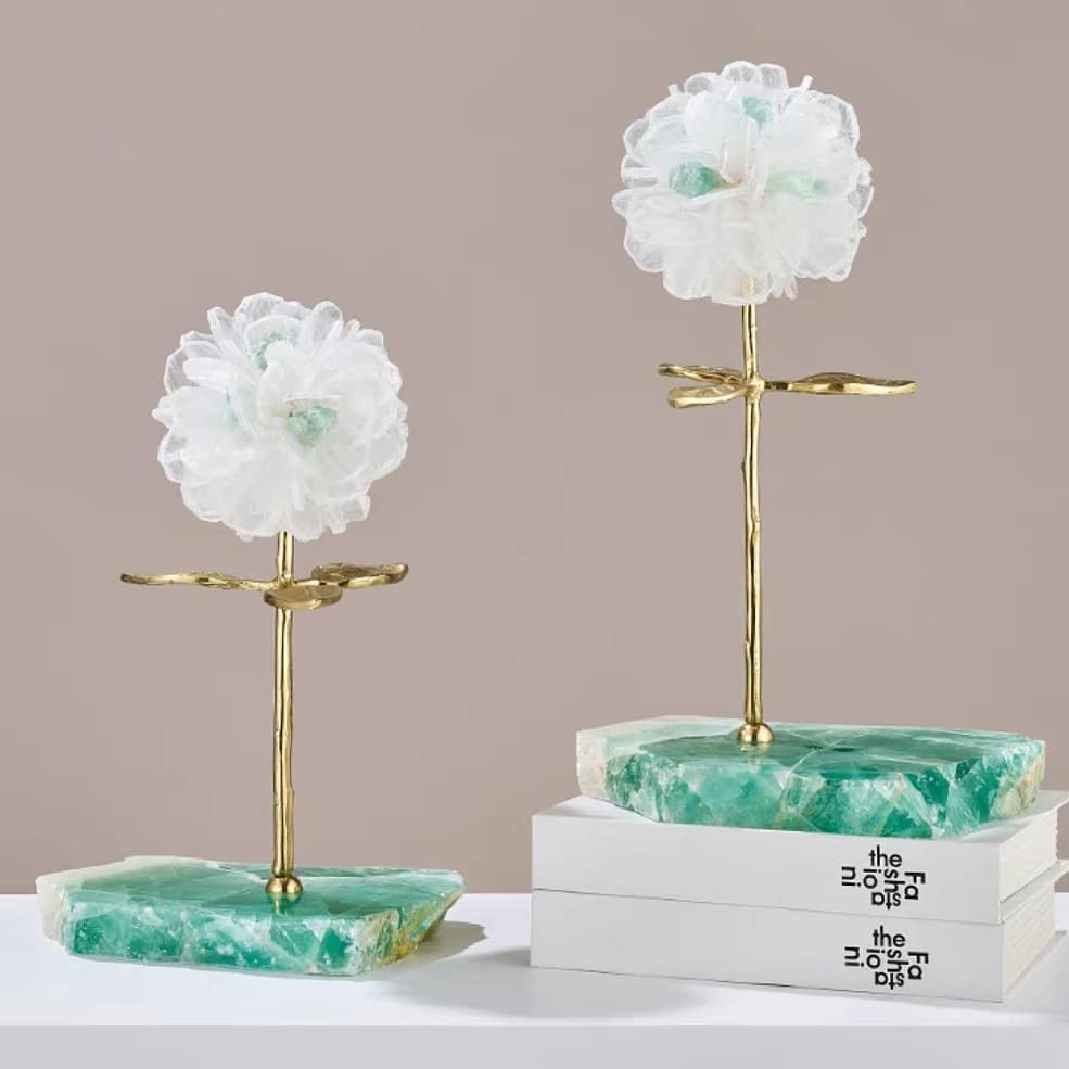 Статуэтка Цветок из горного хрусталя на подставке из флюорита S