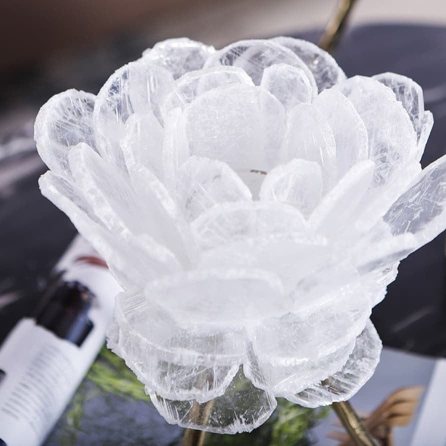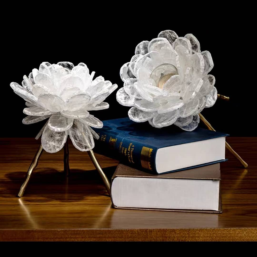 Фигурка Цветок-подсвечник с лепестками кварца на подставке высокий