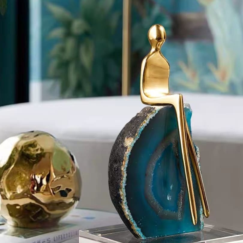Человеческие фигурки из благородной задумчиво восседают на срезах прекрасных агатов. А может они просто заряжаются энергией этого очаровательного самоцвета? В любом случае, это прекрасный декор, задумчивый, с одухотворенными, поэтическими и философскими нотками.