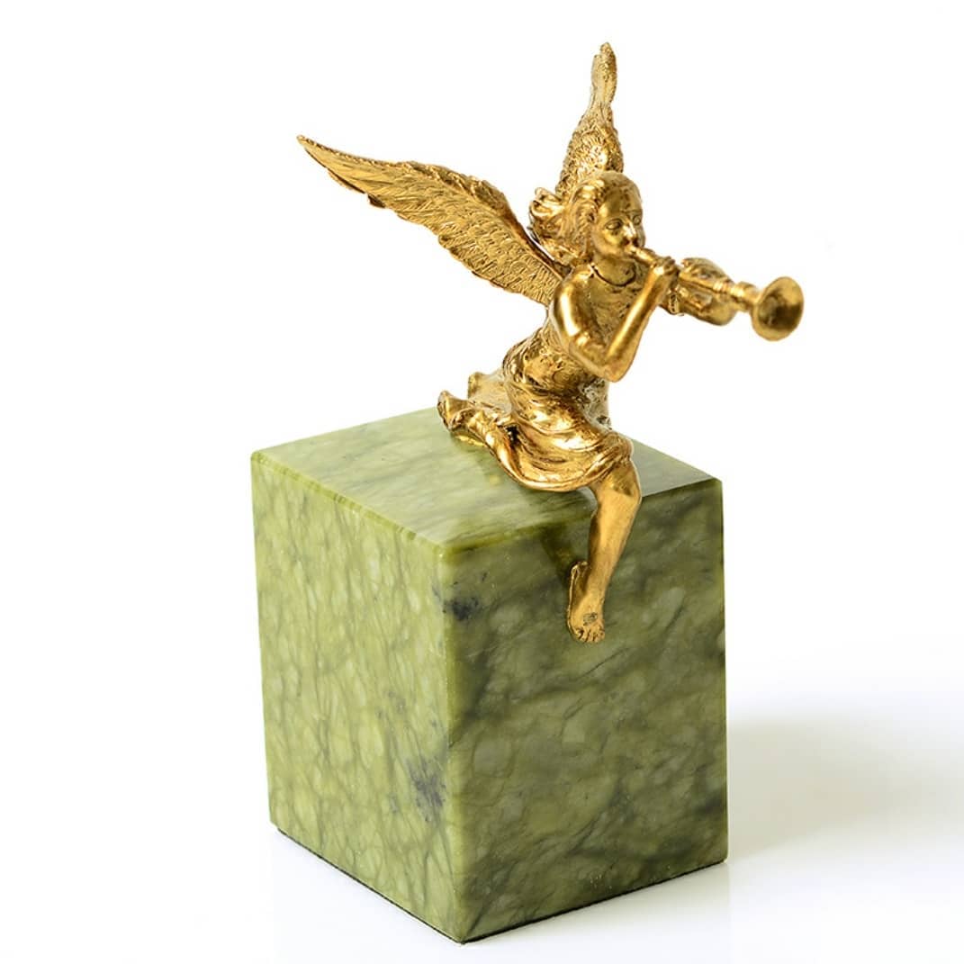 Статуэтка Богиня Фама на подставке зеленого мрамора