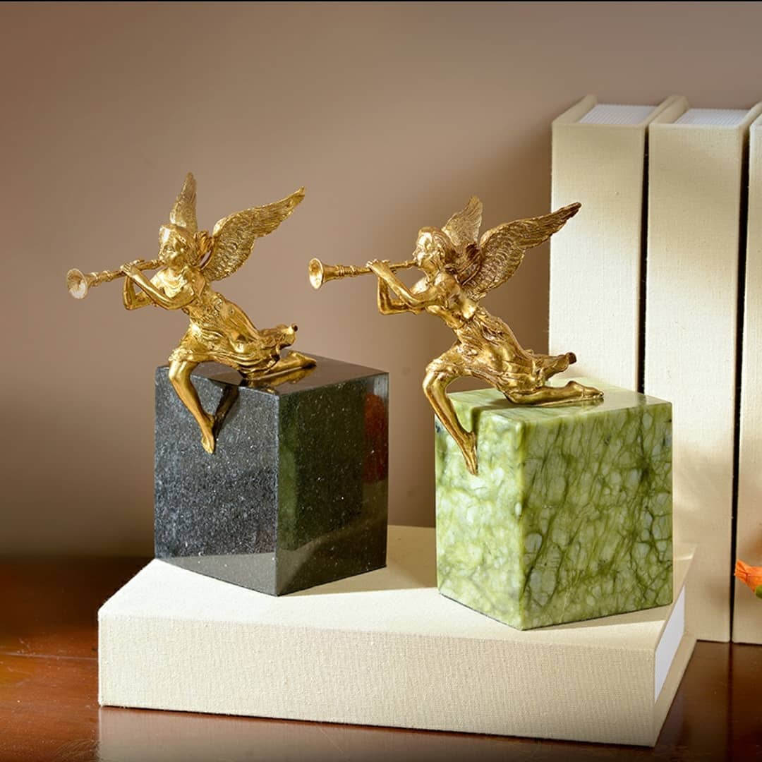 Неожиданное и яркое предложение – очаровательные фигурки древнегреческой богини Фамы. Благородная латунь и натуральный мрамор в основании. Отличный декор, который подойдет многим творческим людям, а особенно блогерам, представителям масс-медиа и т.д. Фама – богиня молвы, репутации, сказаний, и она знает обо всем, что происходит в мире. И с ней однозначно лучше дружить! Красивая вещь со смыслом, которая украсит как домашний, так и деловой интерьер.