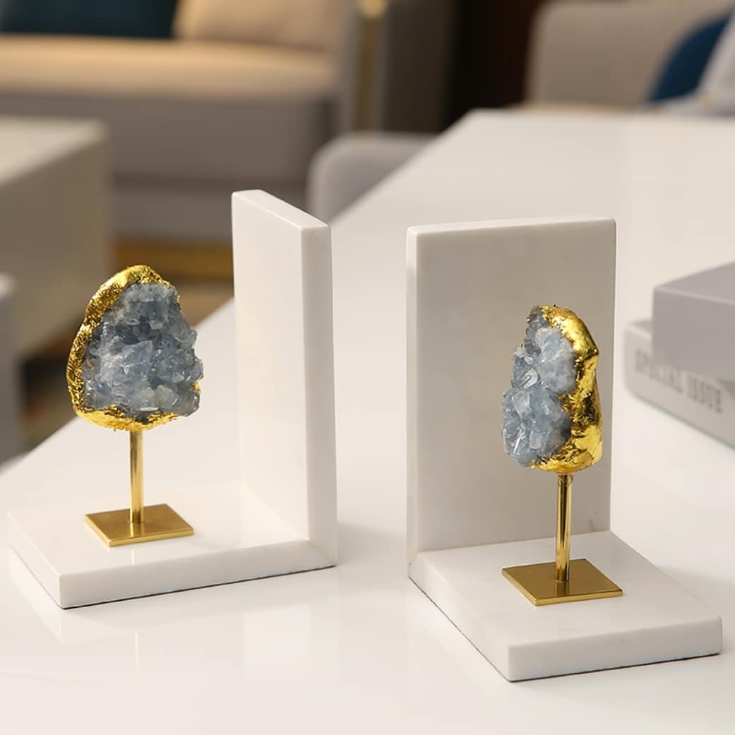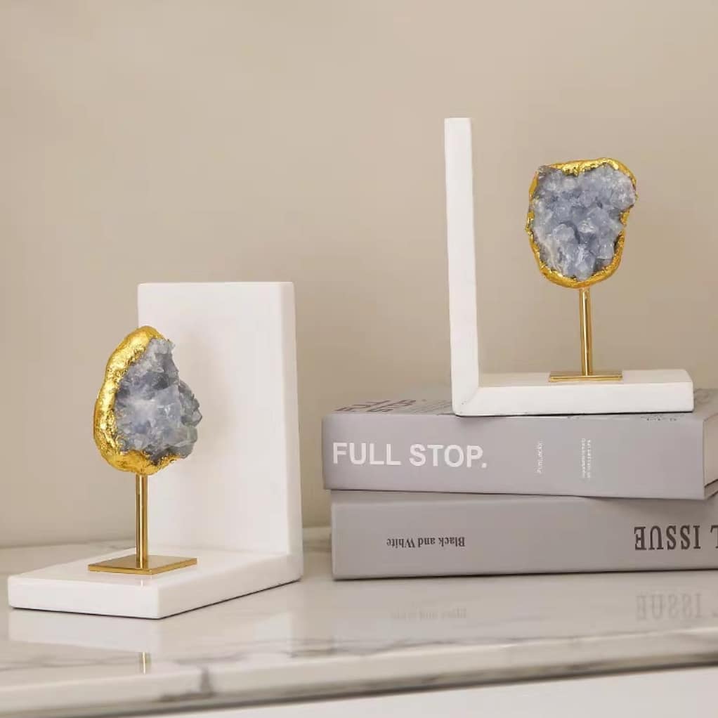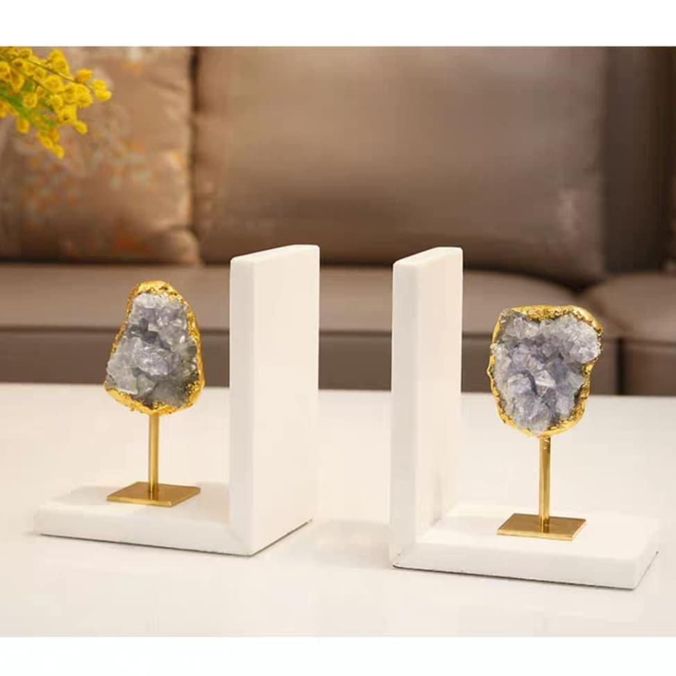 Отличные подставки для книг из жеоды агата и натурального мрамора! Красивый и практичный декор для вашего интерьера. Очень удобен для тех, кто планирует чтение нужных книг. Прочитанные книги постепенно убираем, и когда наступит момент воссоединения двух подставочек, поздравляем себя – план выполнен! И можно «заряжать» свежую порцию полезных и интересных книг.