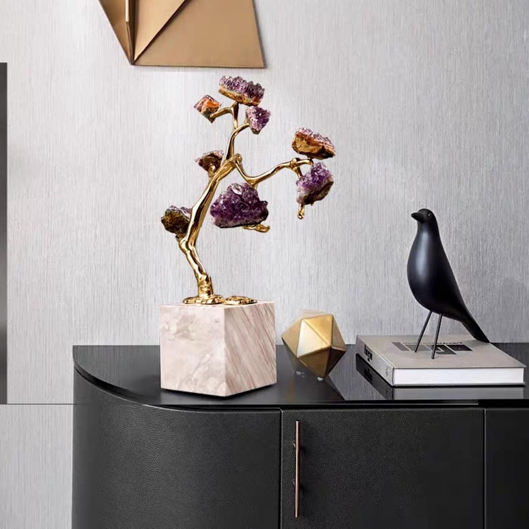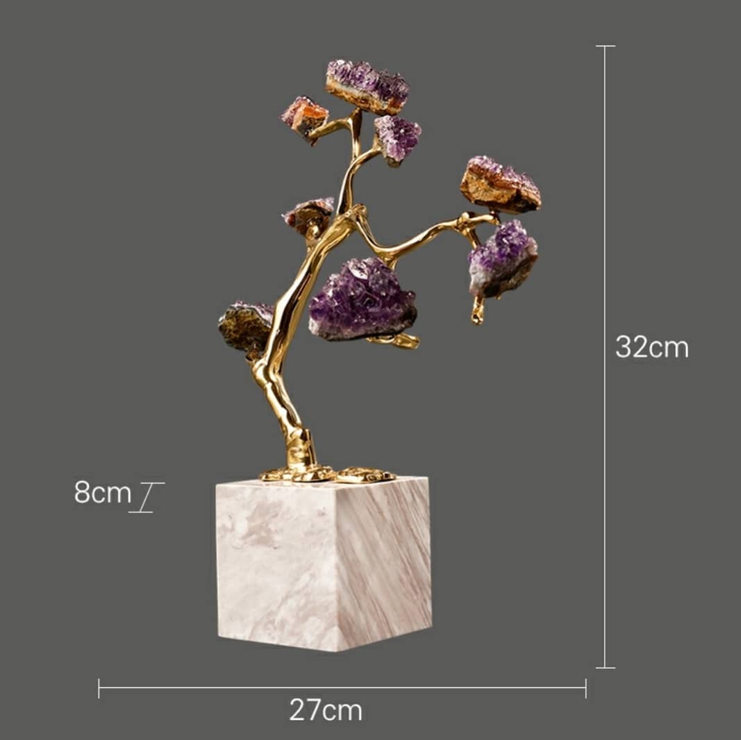 Статуэтка Бонсай с кристаллами аметиста на мраморной подставке