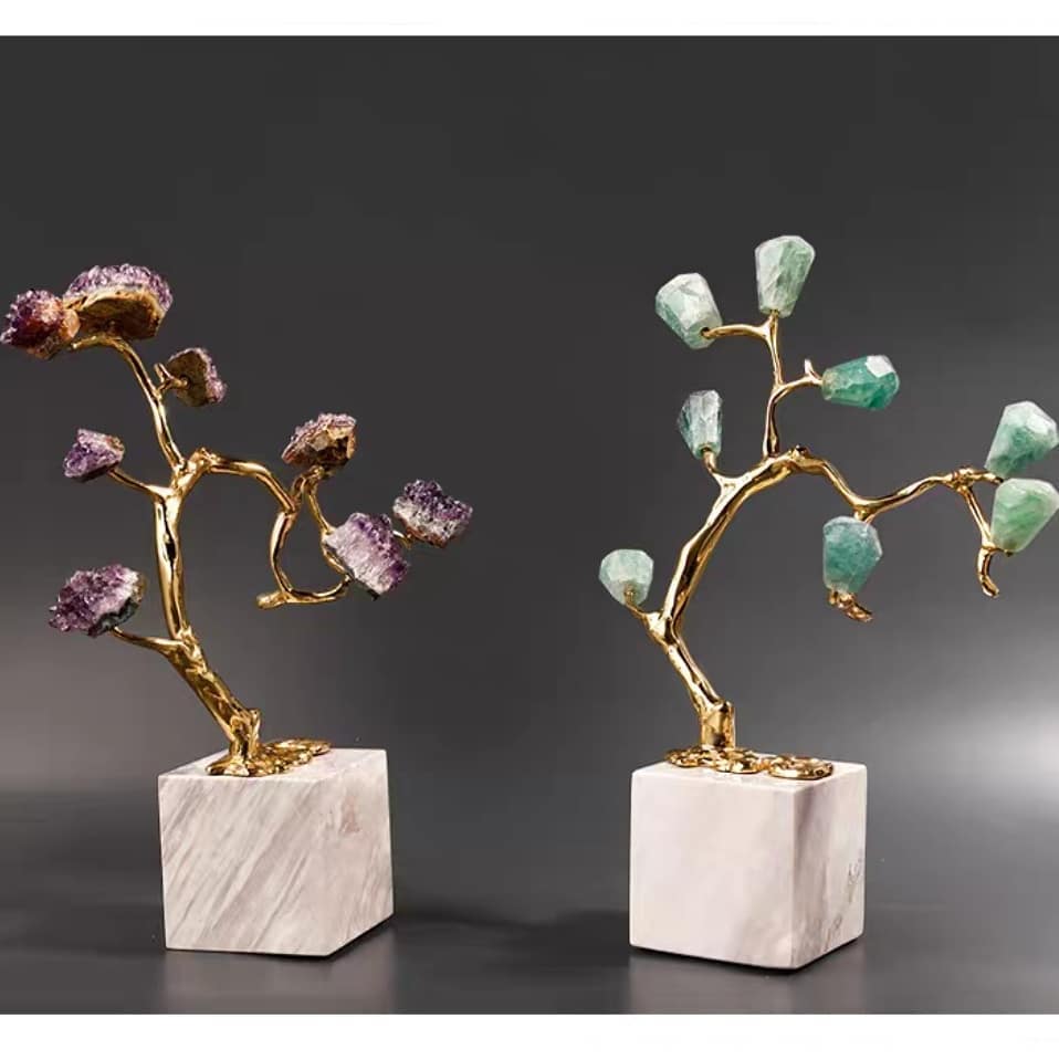 Очаровательные бонсаи из благородной латуни – с отборными кристаллами аметиста или флюорита, на выбор. Декоративные деревца на подставках из натурального мрамора добавят тепла и красоты в ваш домашний и (или) рабочий интерьер.