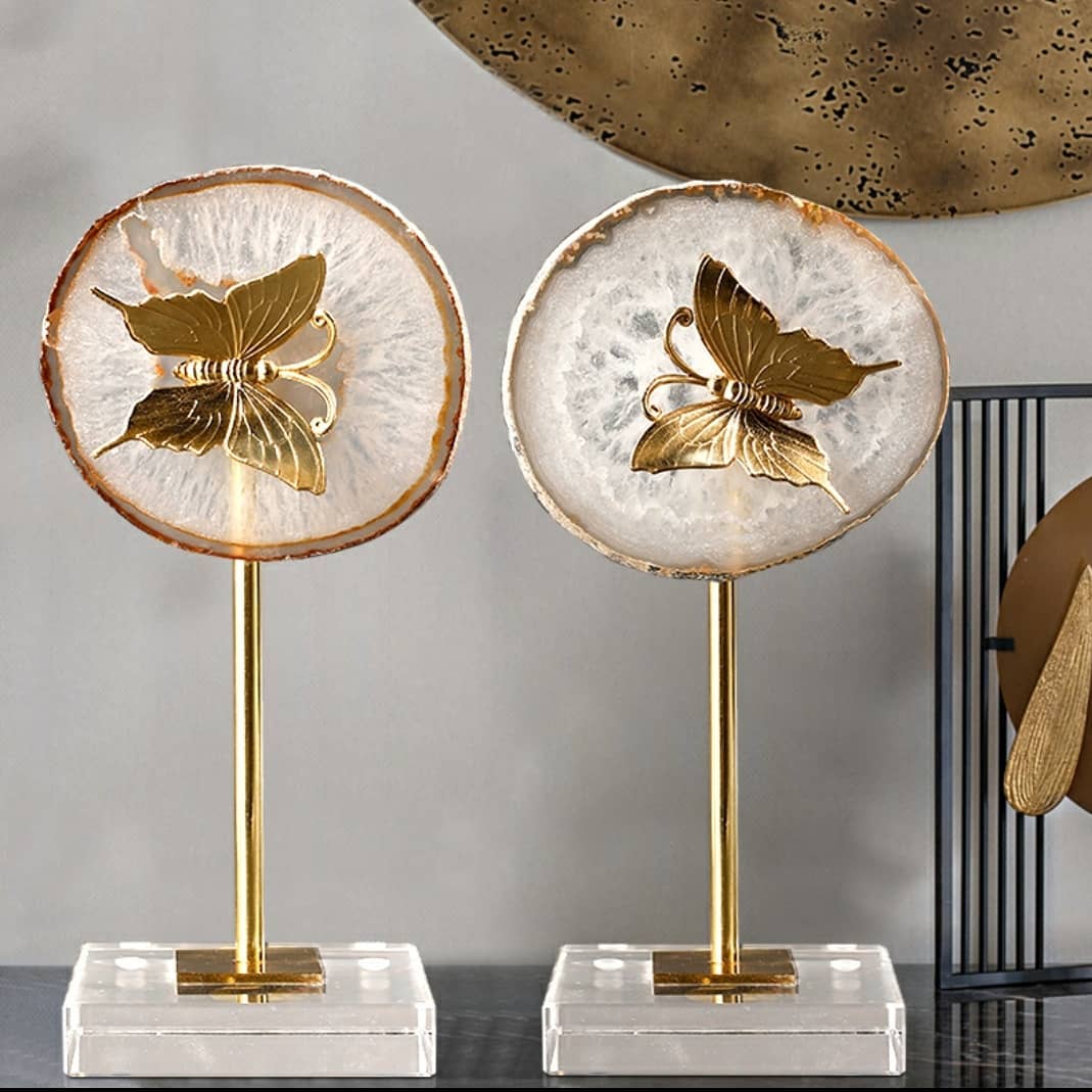 Бабочки-красавицы – из благородной латуни – на срезах отборного, натурального агата!