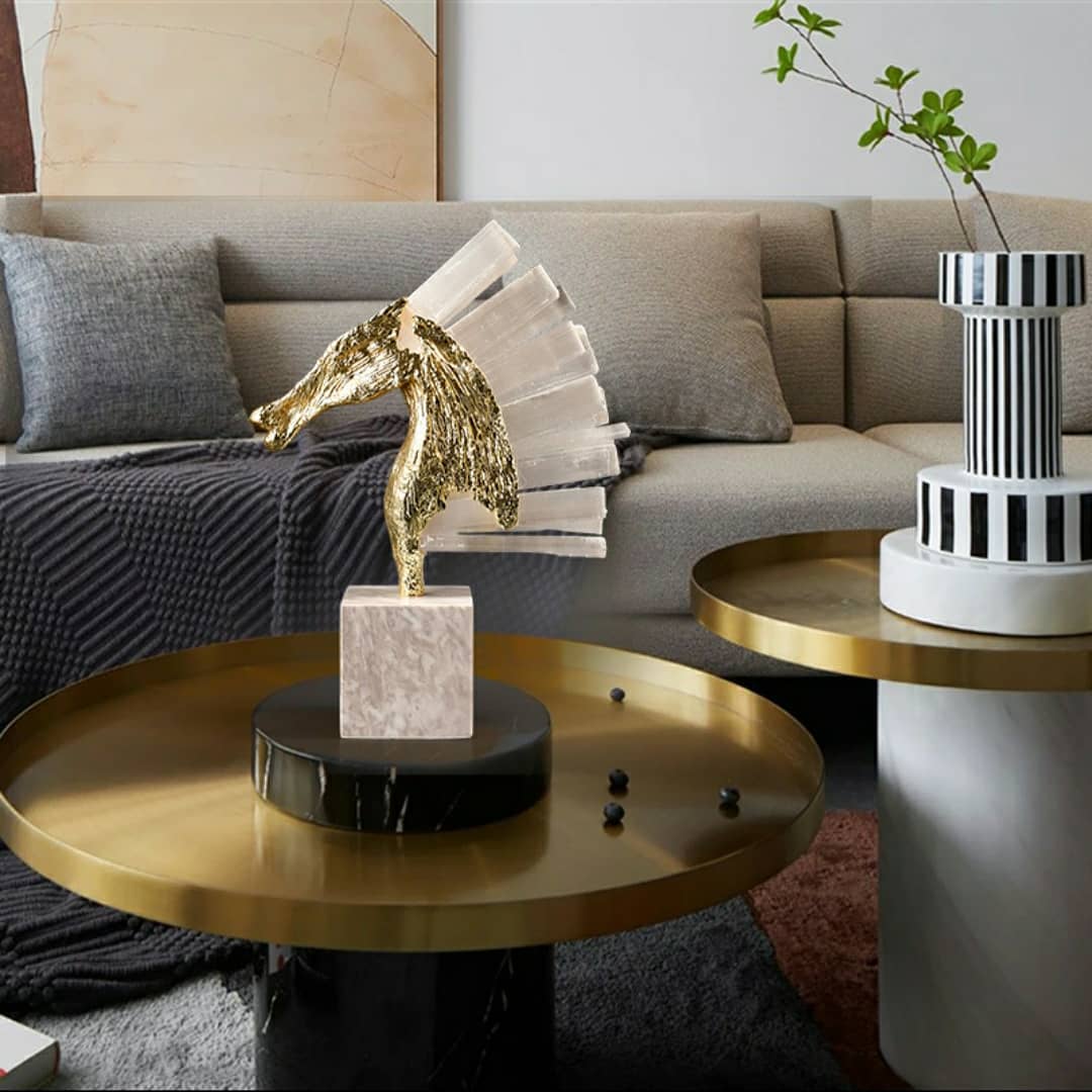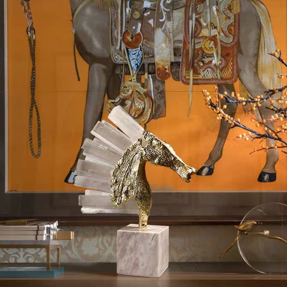 Морской конёк – символ творческой активности, неиссякаемой энергии и азарта! Символ того, что сейчас особенно востребовано, а в дальнейшем будет востребовано ещё больше. Благородная латунь, кристаллы горного хрусталя, натуральный мрамор. Оригинальный и яркий декор, который и украсит ваш домашний и (или) деловой интерьер, добавит ему уникальности.