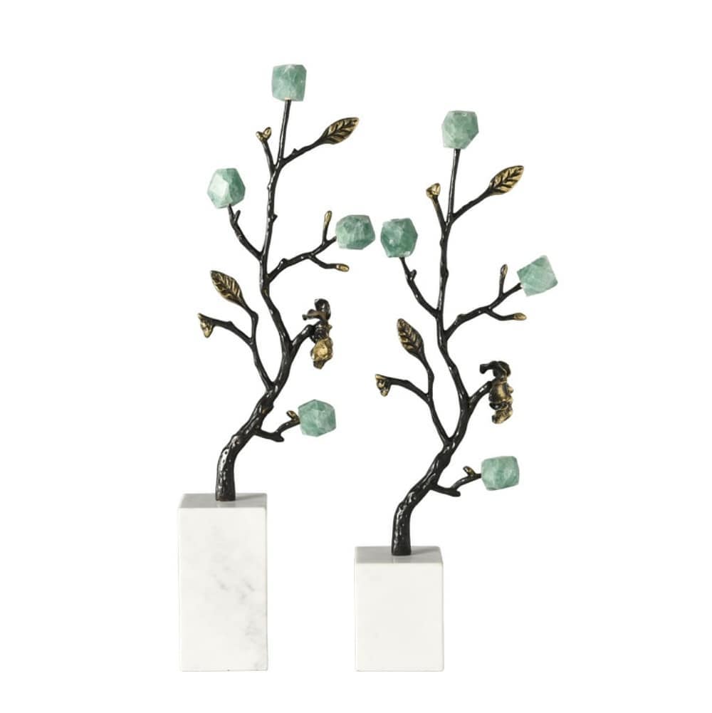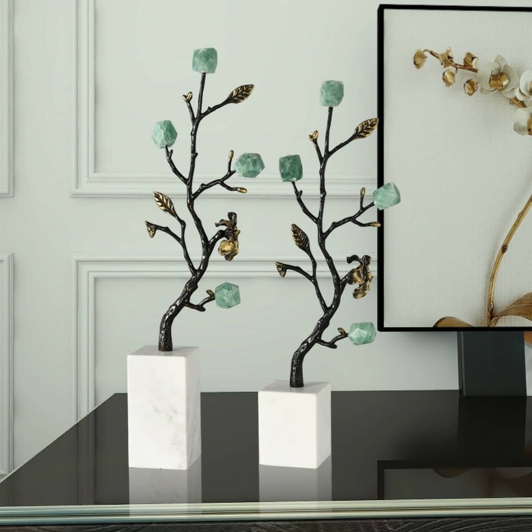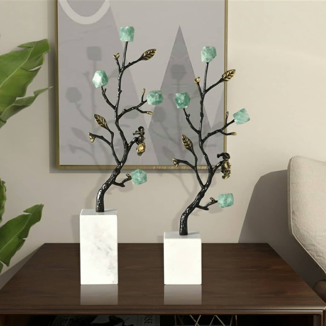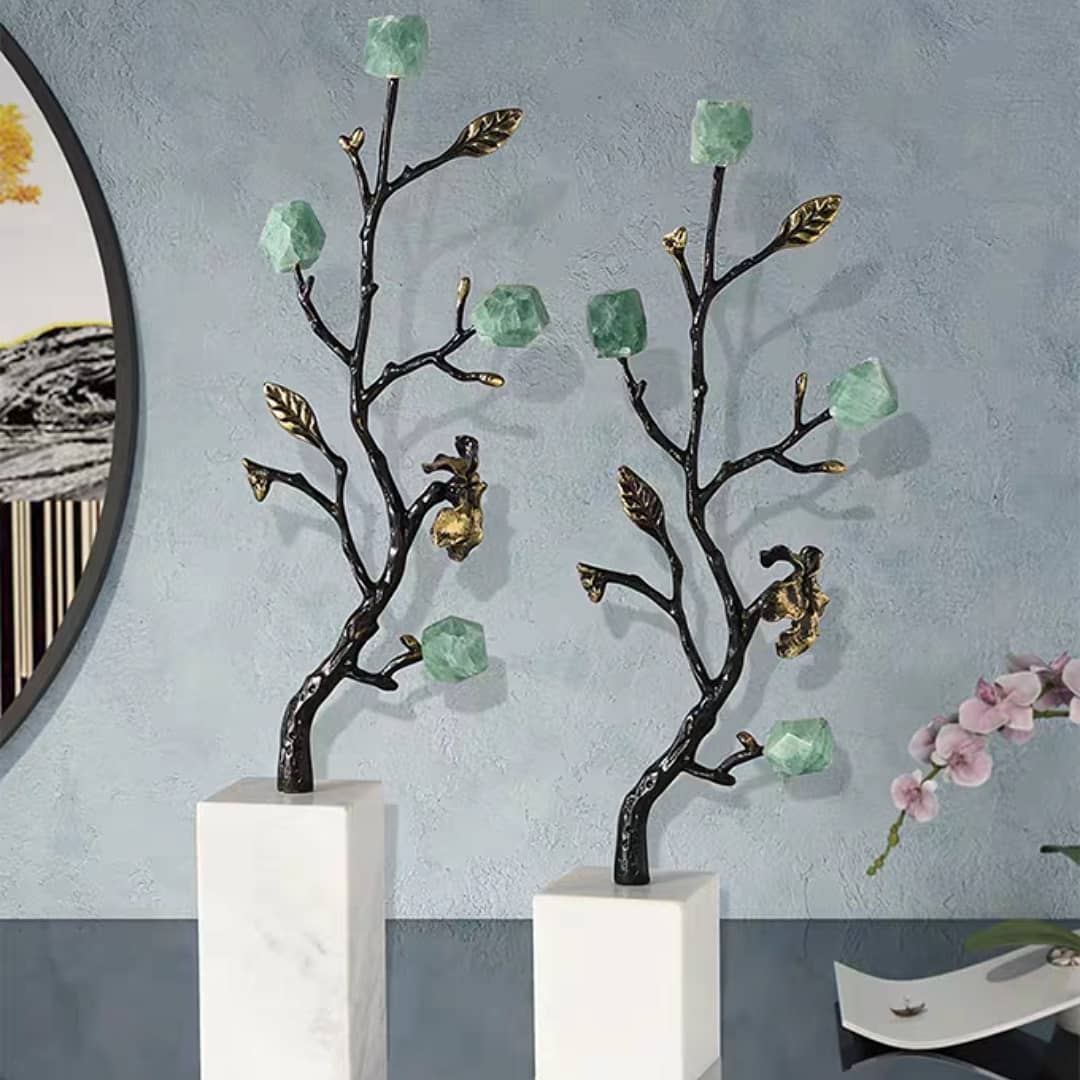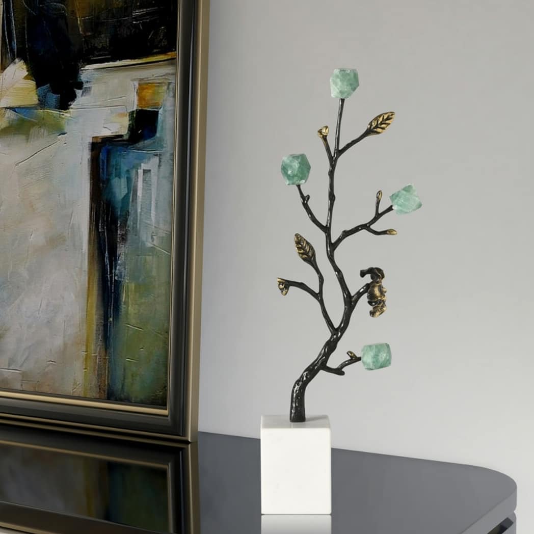 Статуэтка Деревце из чернёной латуни с кристаллами флюорита на подставке