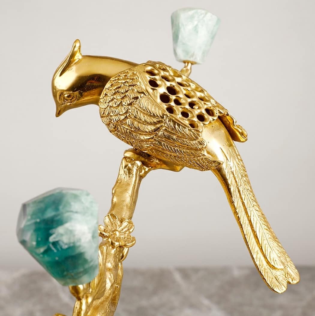 Статуэтка Романтичная птичка на ветке с флюоритом на подставке