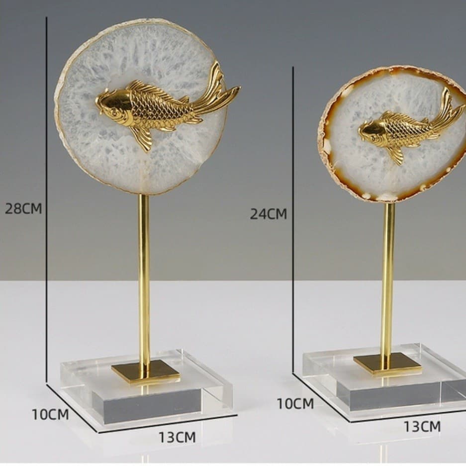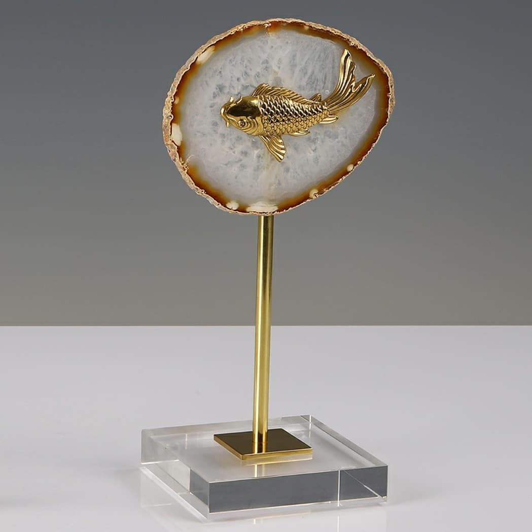 Статуэтка Золотая рыбка на срезе агата на подставке S
