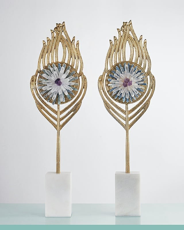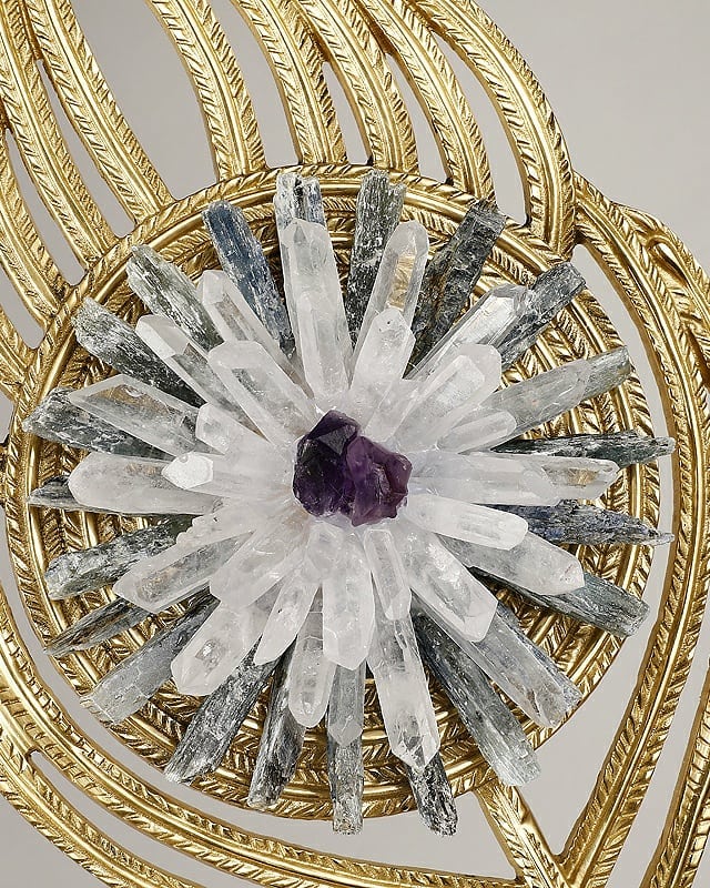селенит, горный хрусталь, аметист, латунь, мрамор |