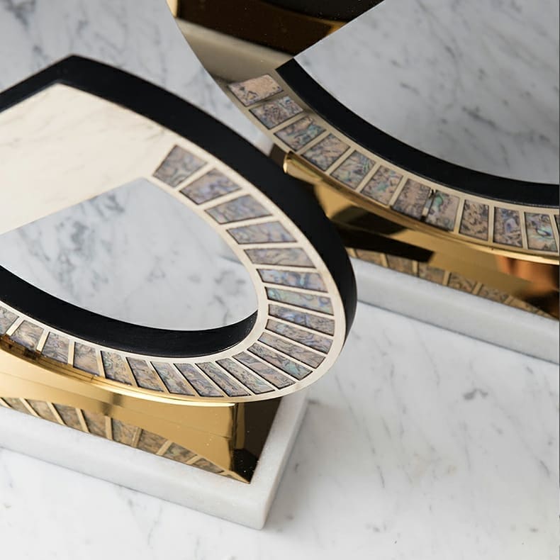 Роскошный декор из натурального перламутра, благородной латуни и белоснежного мрамора. Подставки, которые прекрасно впишутся в интерьер солидного домашнего или рабочего интерьера. Лучшее место для хранения самых важных бумаг. Есть в этих подставочках древнеегипетская эстетика. И все договора, которые «пройдут» через них, обязательно должны быть подписанными, а проекты – успешно завершенными.