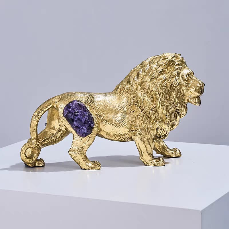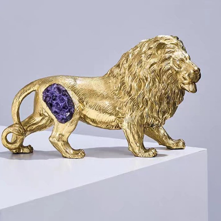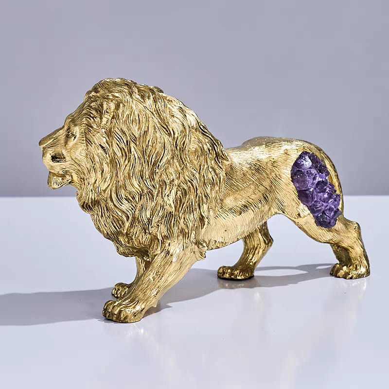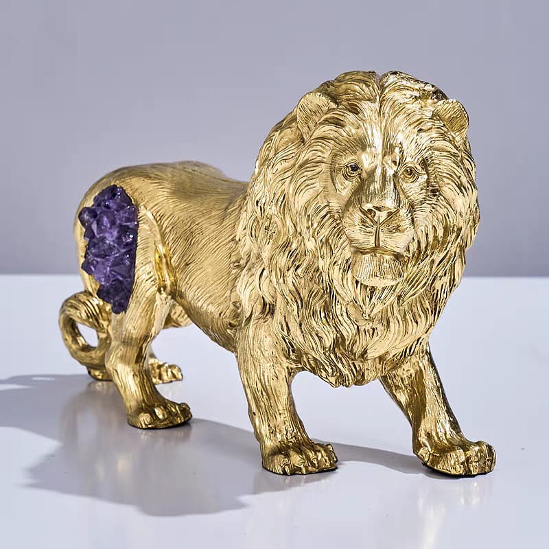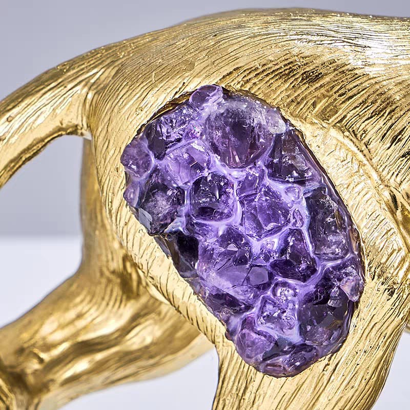 Роскошный дизайнерский декор премиального качества от Monsterior Gems. Отличное украшение для современного, стильного интерьера – домашнего и (или) делового, рабочего. Благородная латунь, отборные кристаллы аметиста. Классный подарок родным и любимым людям, чей зодиакальный знак Лев!