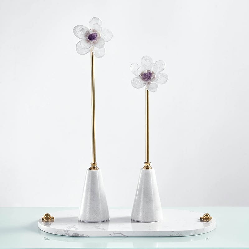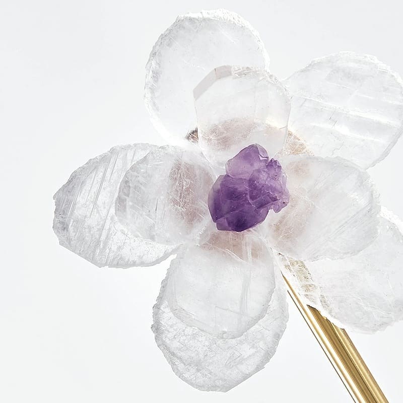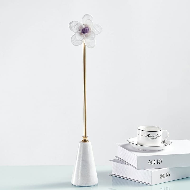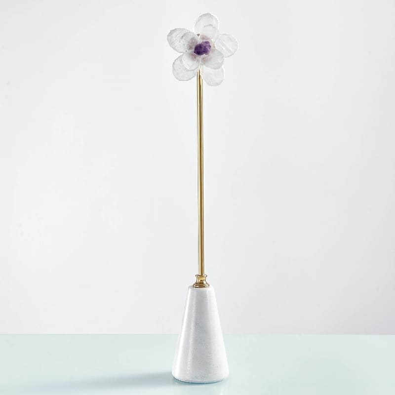 Статуэтка Цветочек из кварцита и аметиста на подставке из мрамора M
