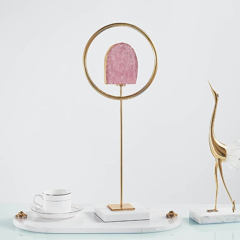 Статуэтка Розовый кварц в обрамлении на подставке из мрамора M