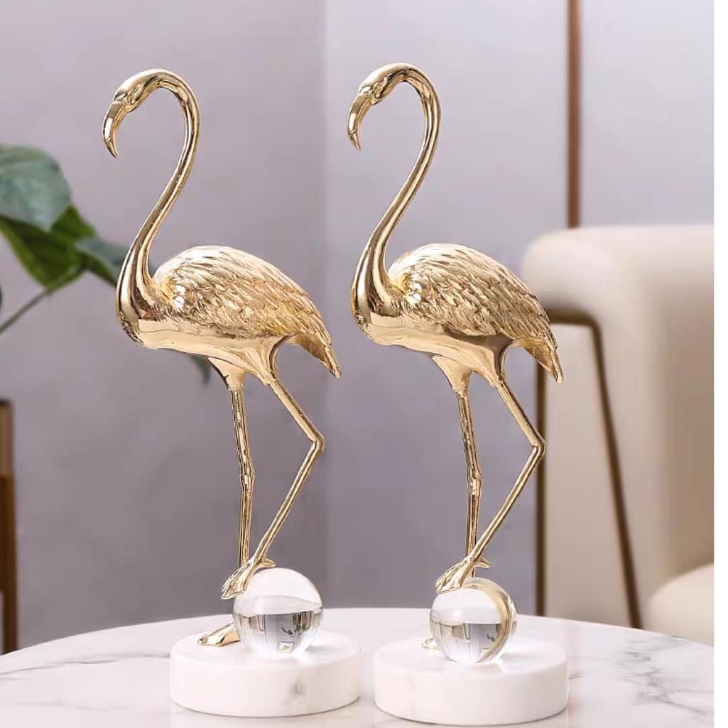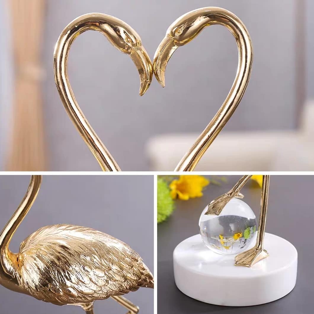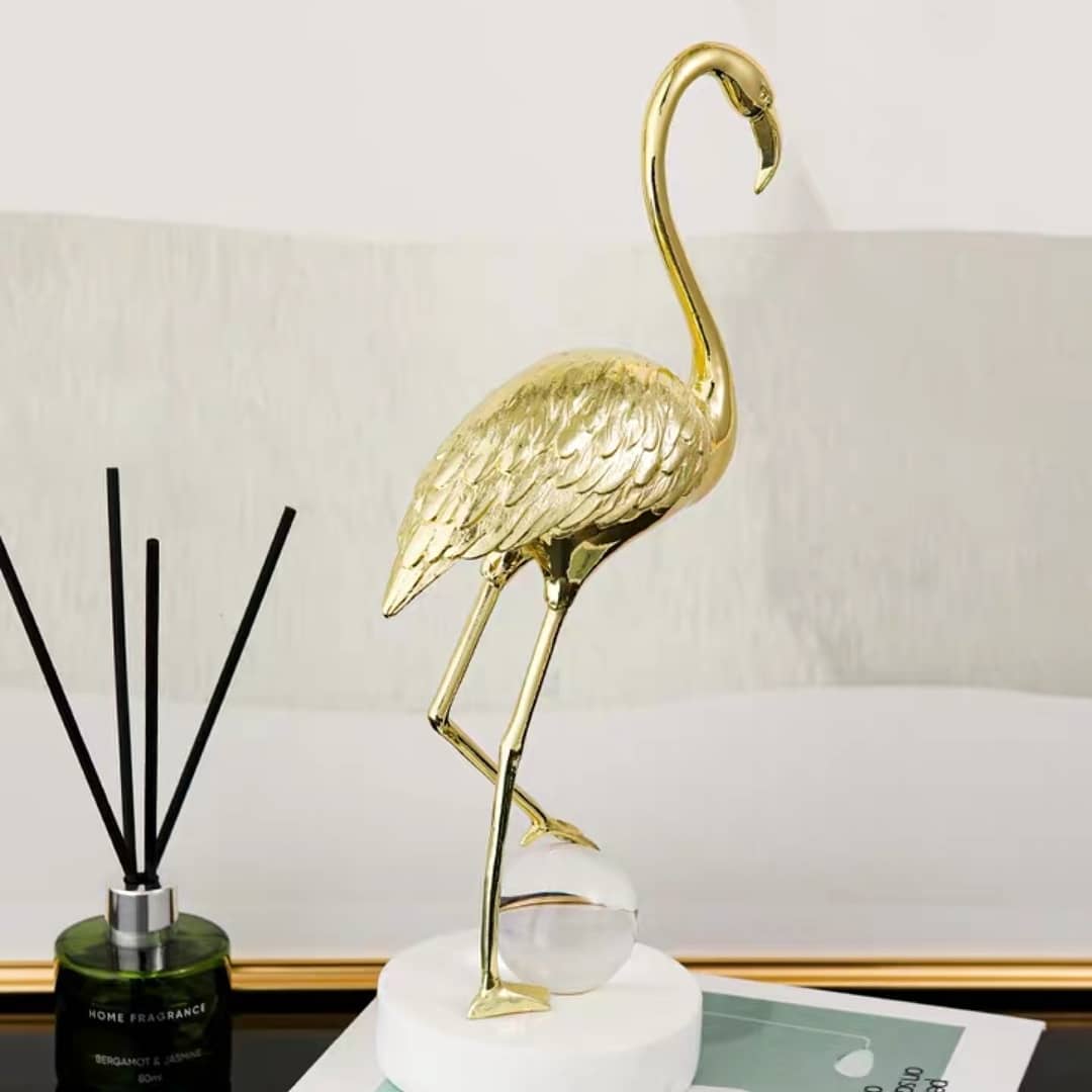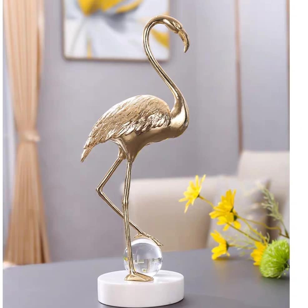 Прекрасная и изящная птица-фламинго – из благородной латуни, шар – из хрусталя, а подставка – мраморная! А всё вместе – роскошный и статусный декор, который украсит ваш домашний и (или) деловой интерьер.
