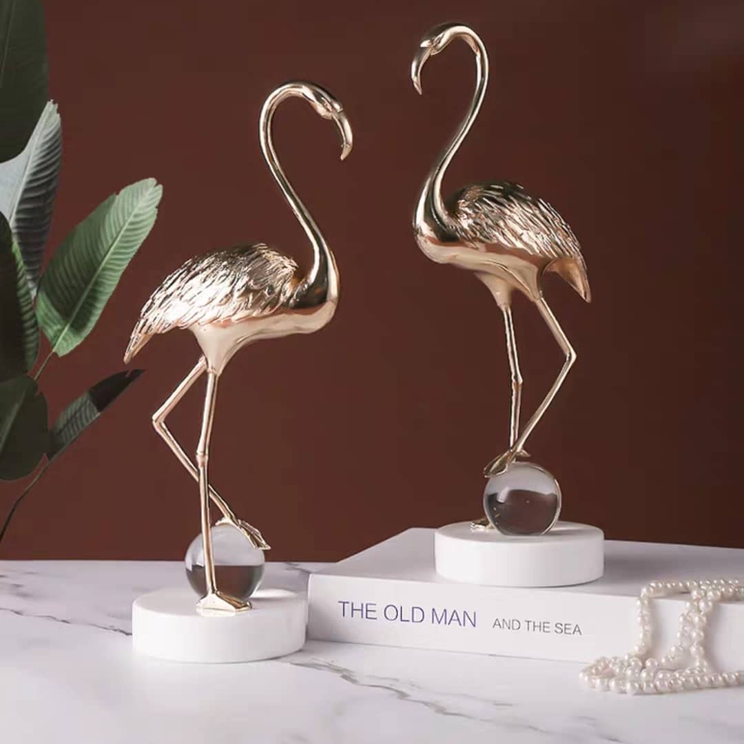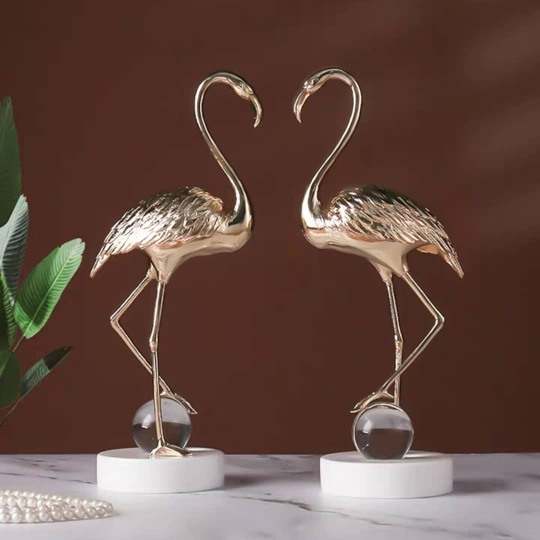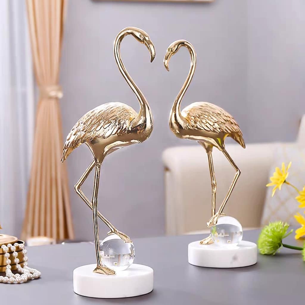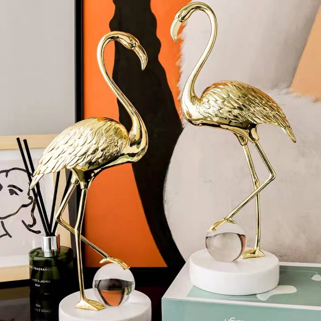 Прекрасная и изящная птица-фламинго – из благородной латуни, шар – из хрусталя, а подставка – мраморная! А всё вместе – роскошный и статусный декор, который украсит ваш домашний и (или) деловой интерьер.