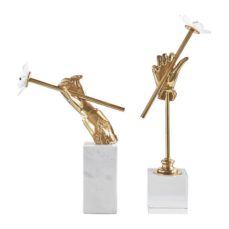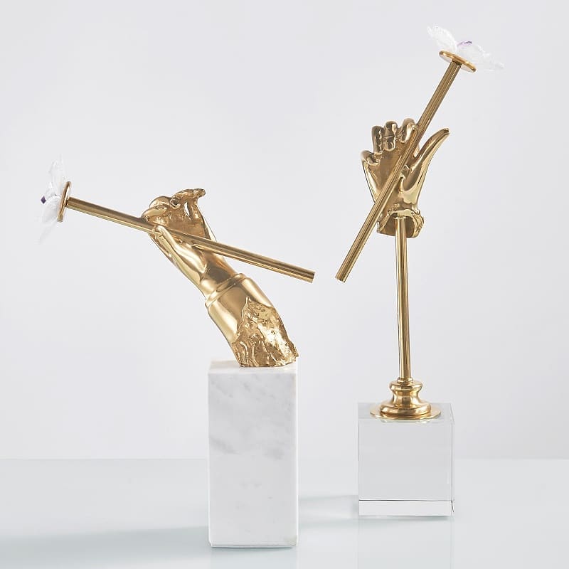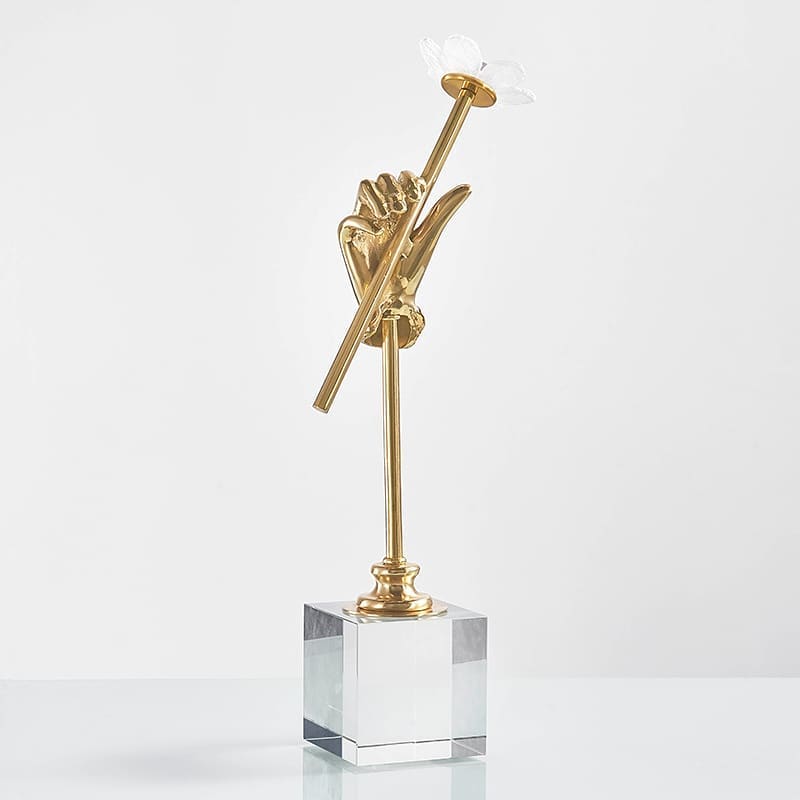 Латунь, натуральные кристаллы, подставка из белоснежного мрамора.