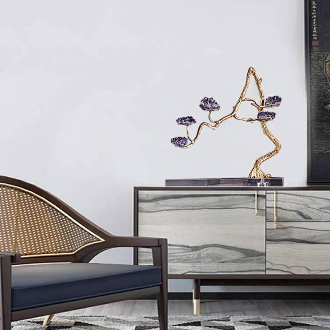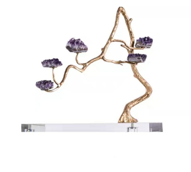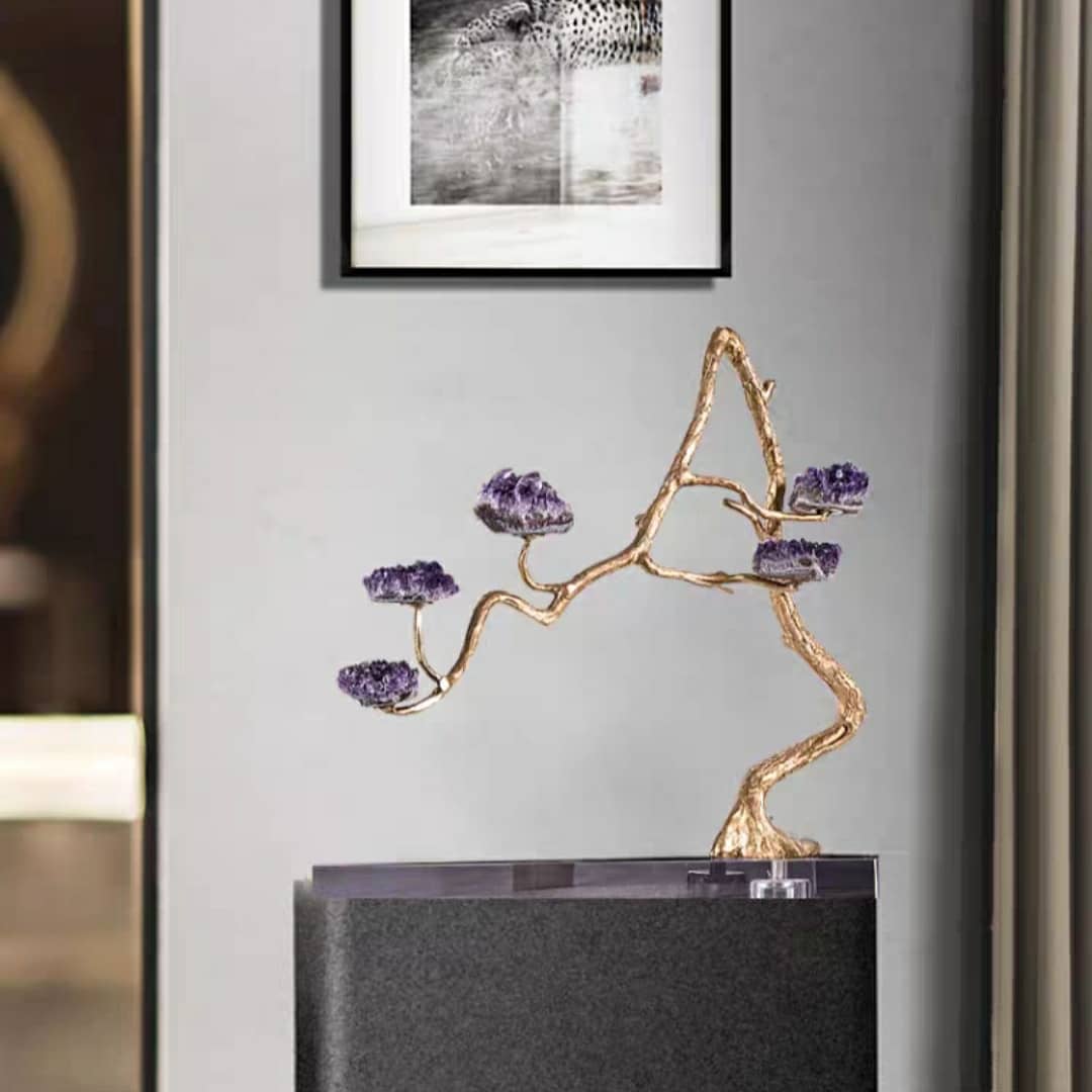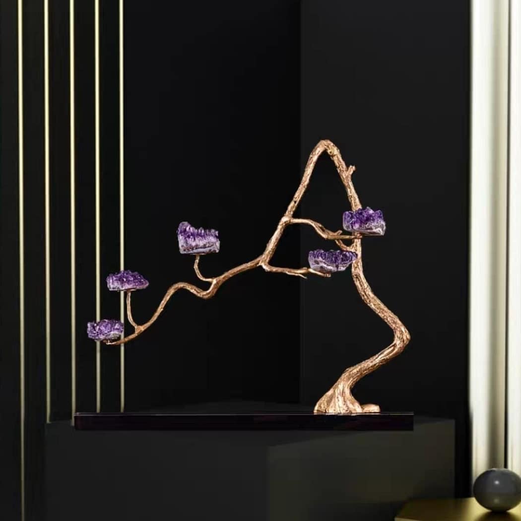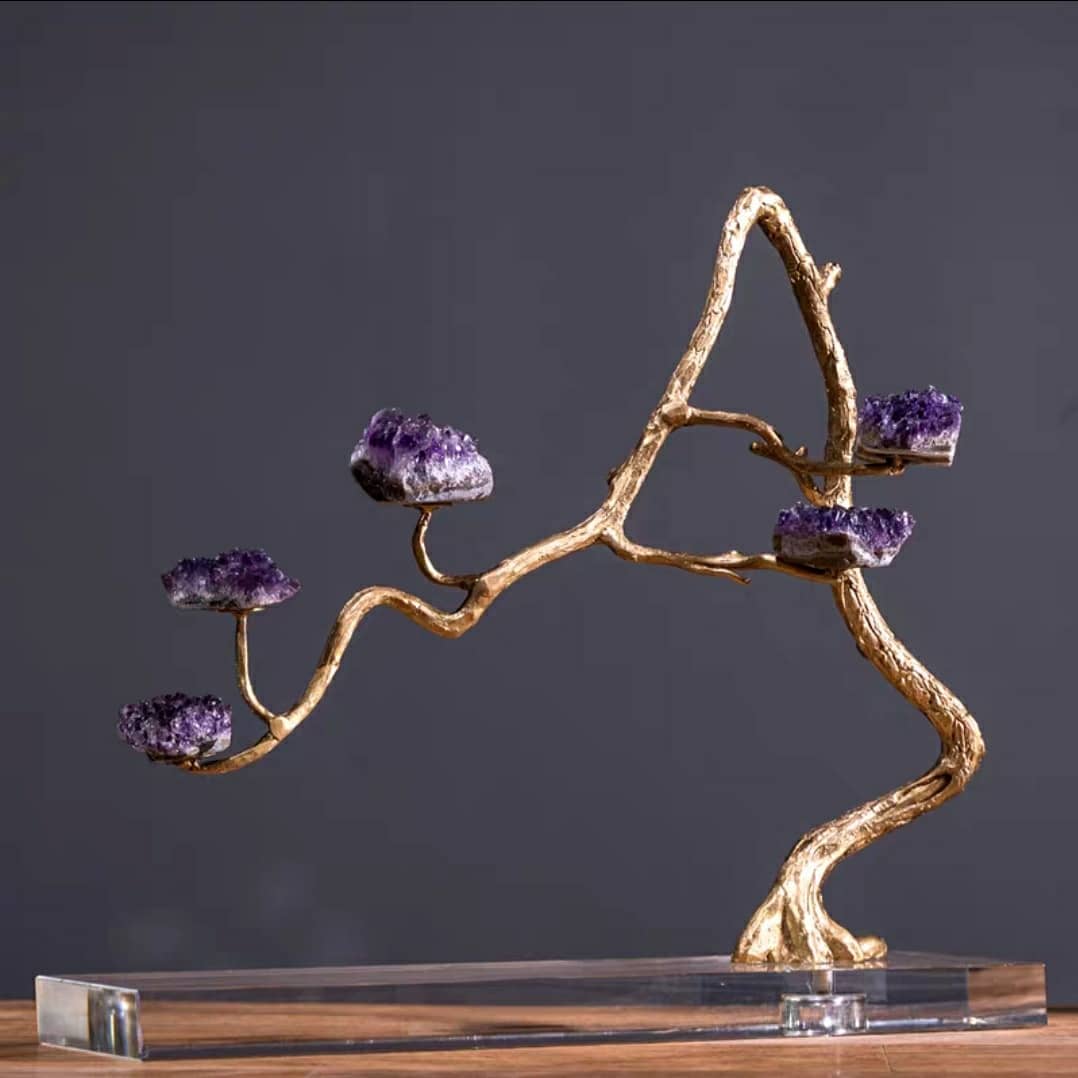 Насыщенно-фиолетовые, сверкающие друзы аметиста, в виде роскошных цветов, на блестящем латунном стебле. Яркая премьера в нашей кристаллической коллекции! Изысканный премиум-декор для красоты и уюта в вашем домашнем и (или) рабочем интерьере.